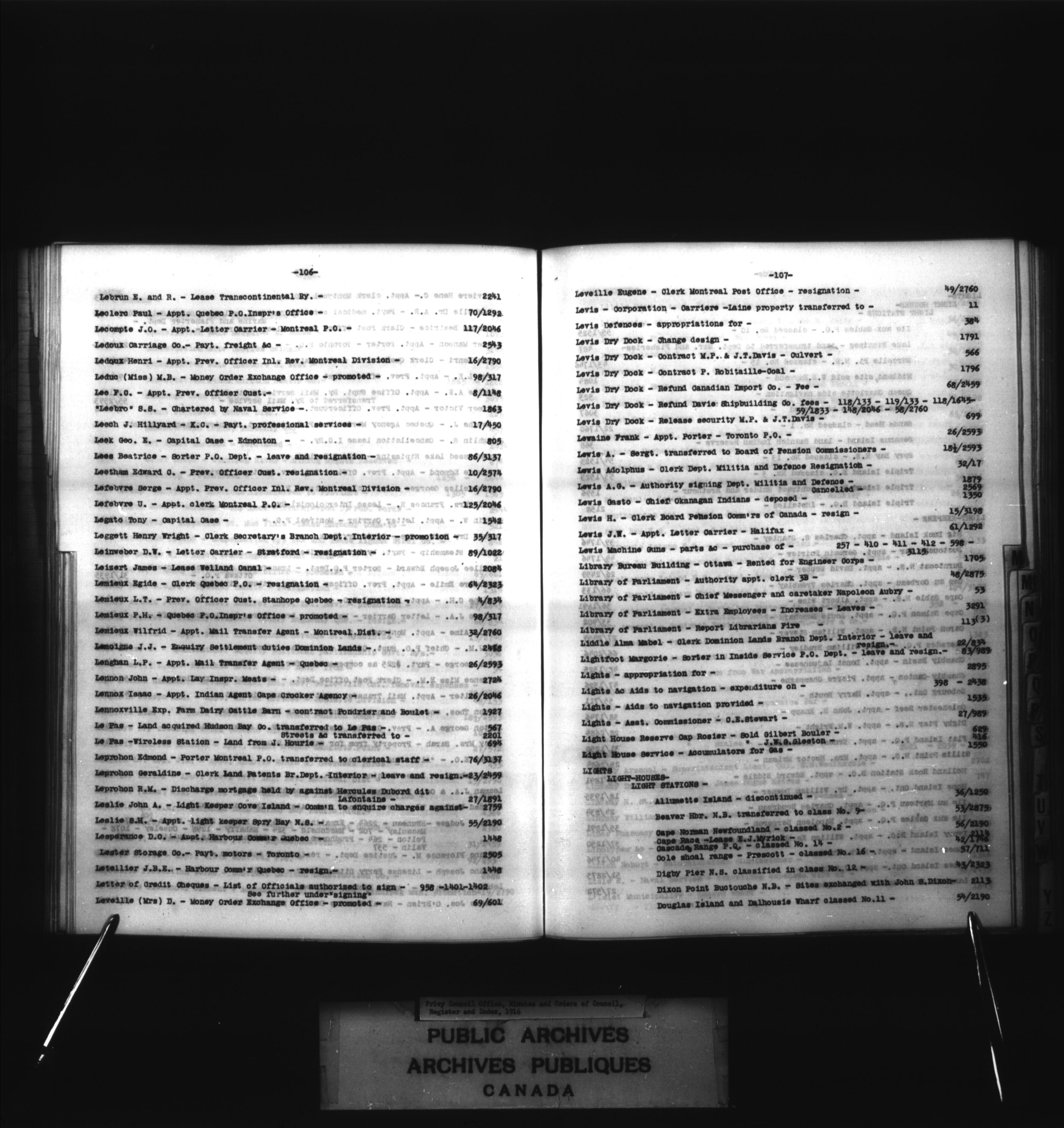 Privy Council Office, Orders in Council : indexes and registers : C-2081