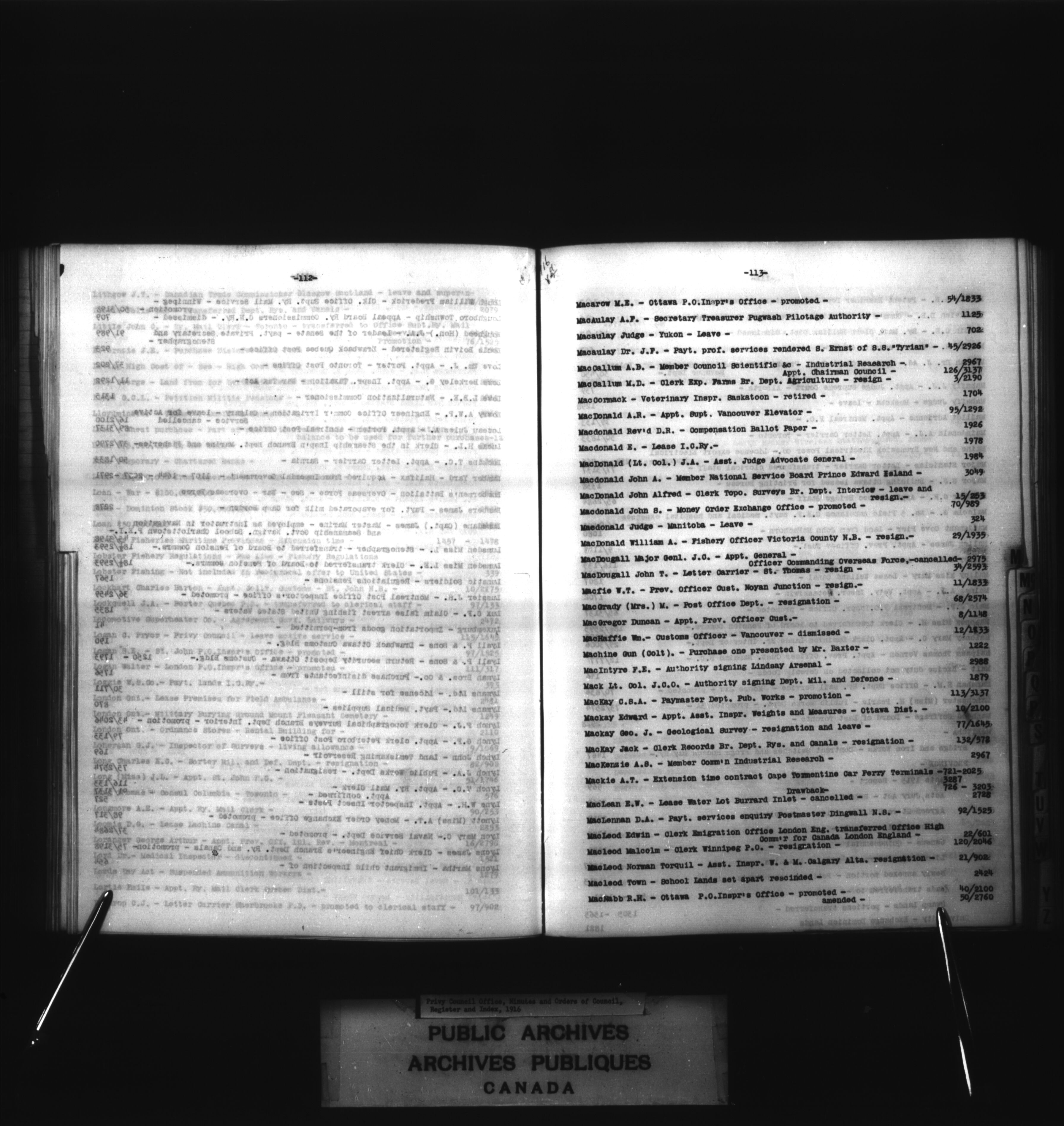 Privy Council Office, Orders in Council : indexes and registers : C-2081
