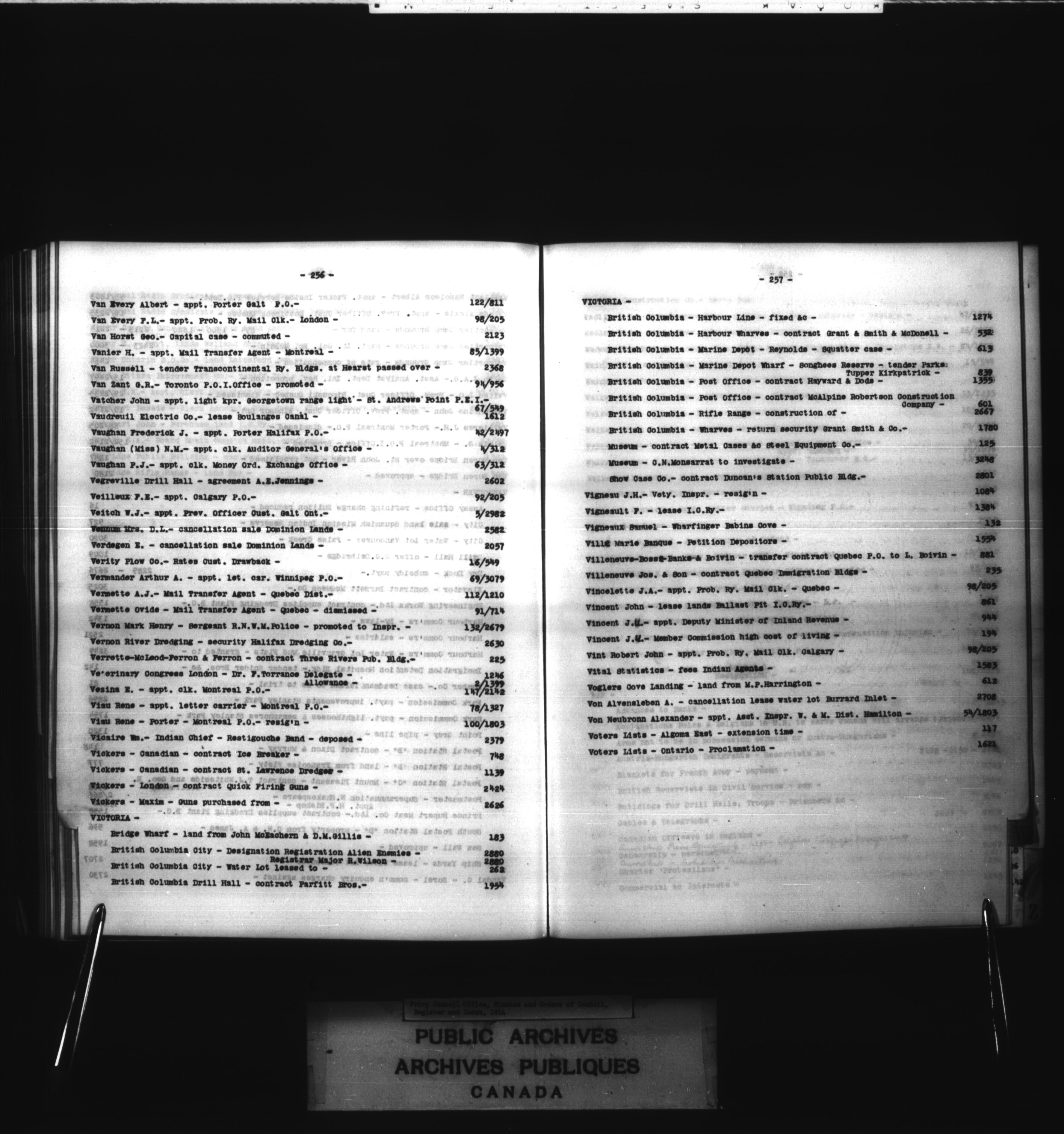 Privy Council Office, Orders in Council : indexes and registers : C-2081