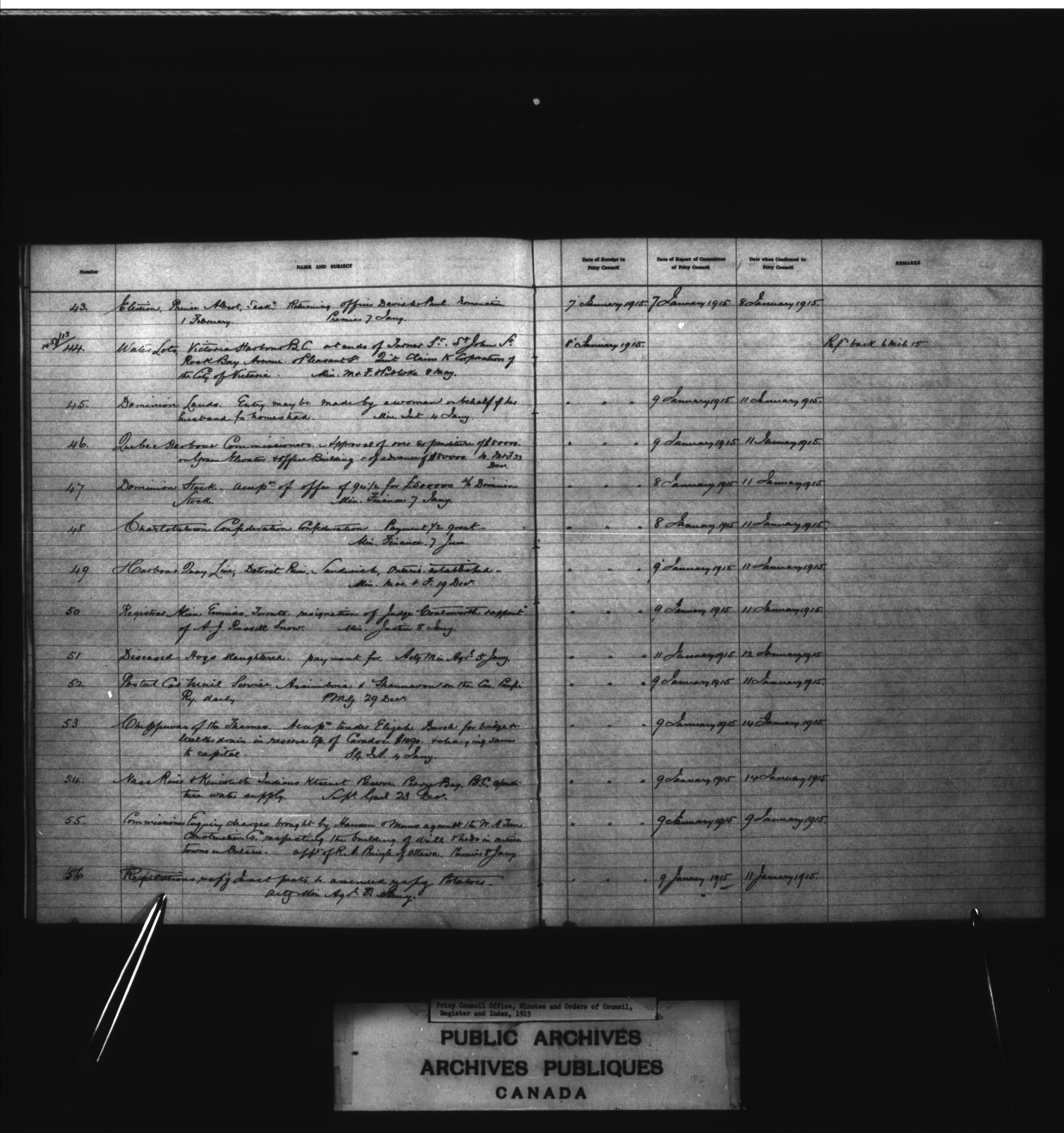 Privy Council Office, Orders in Council : indexes and registers : C-2081