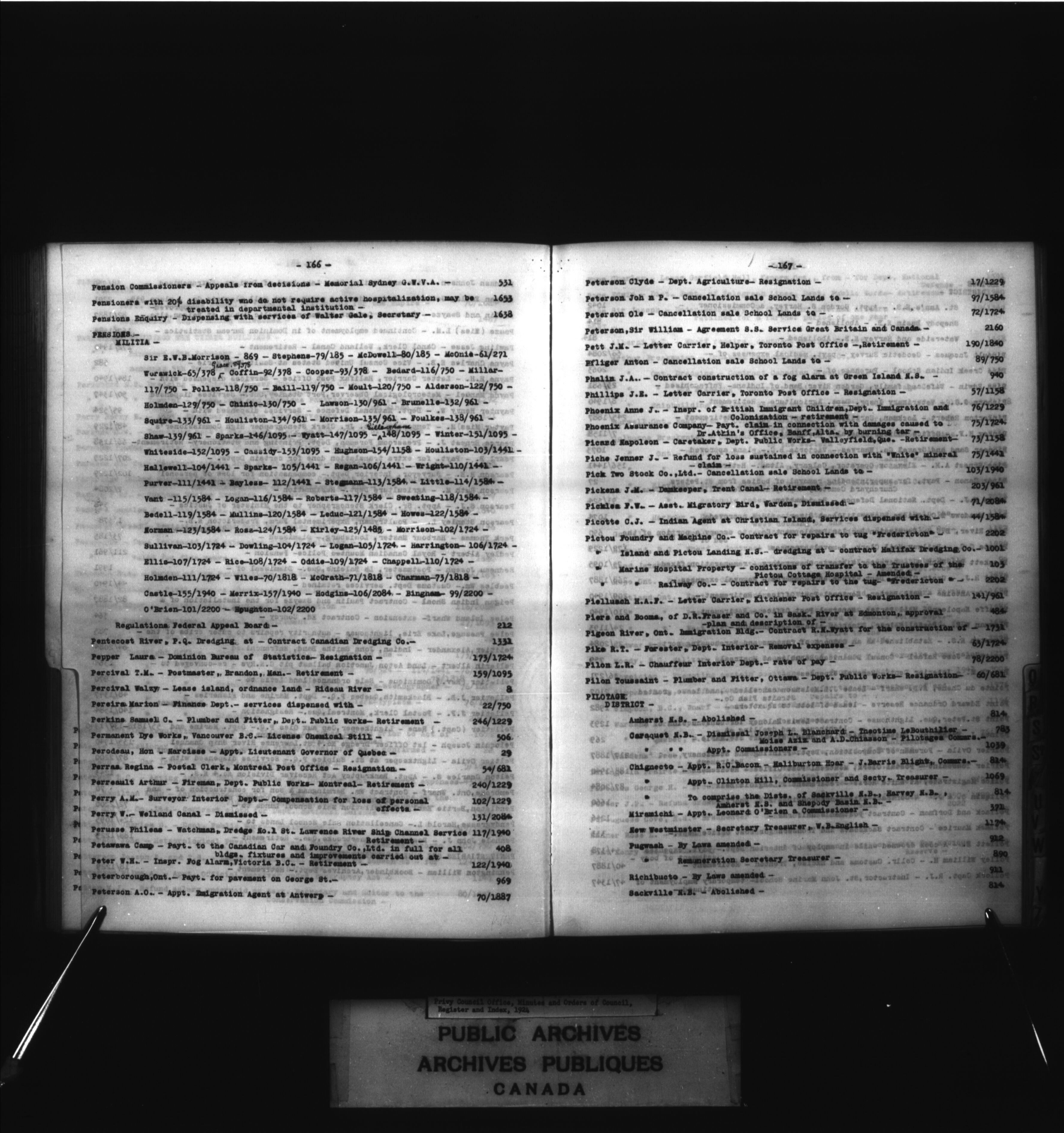 Privy Council Office, Orders in Council : indexes and registers : C-2086