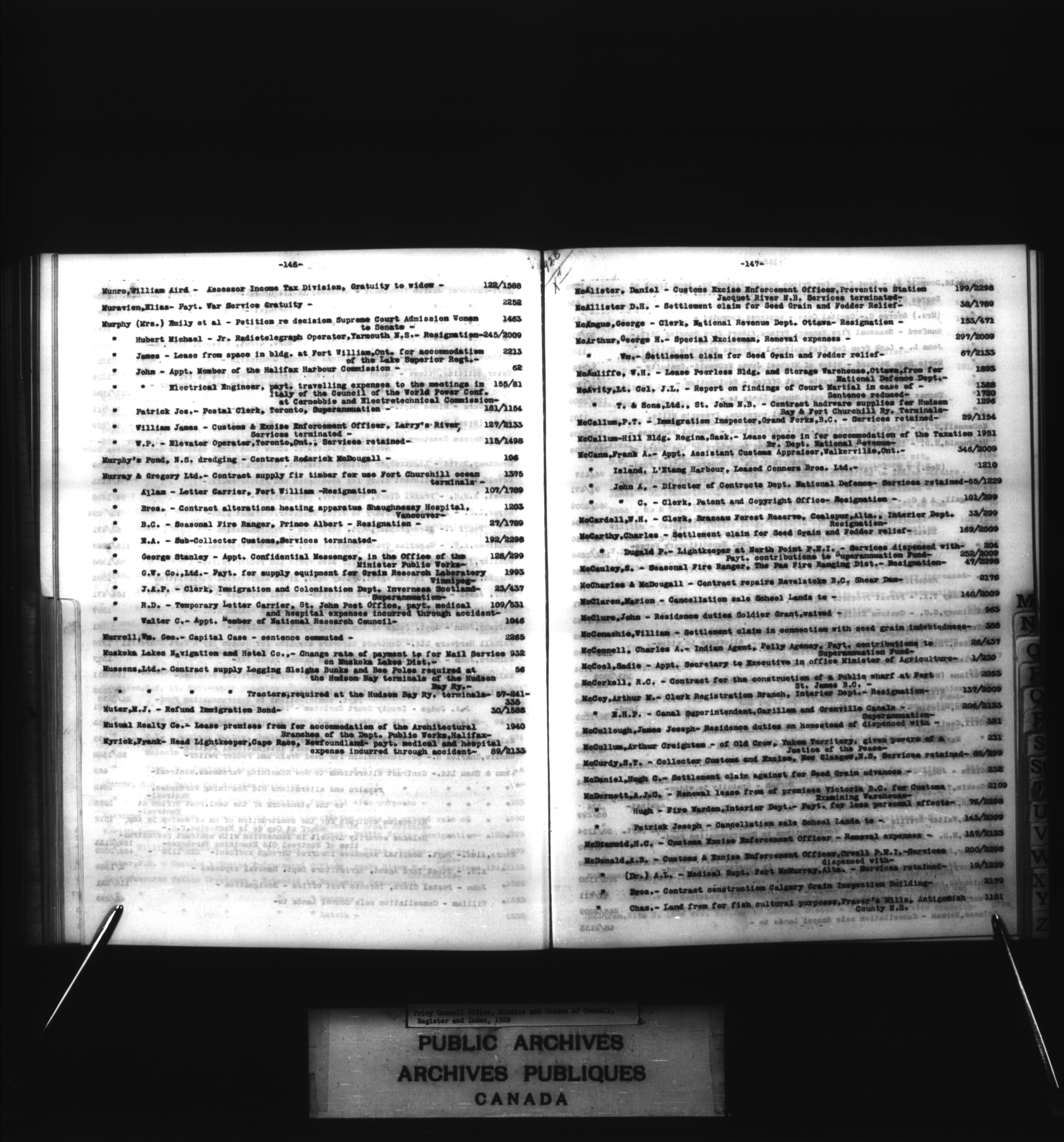Privy Council Office, Minutes and Orders of Council : register and index