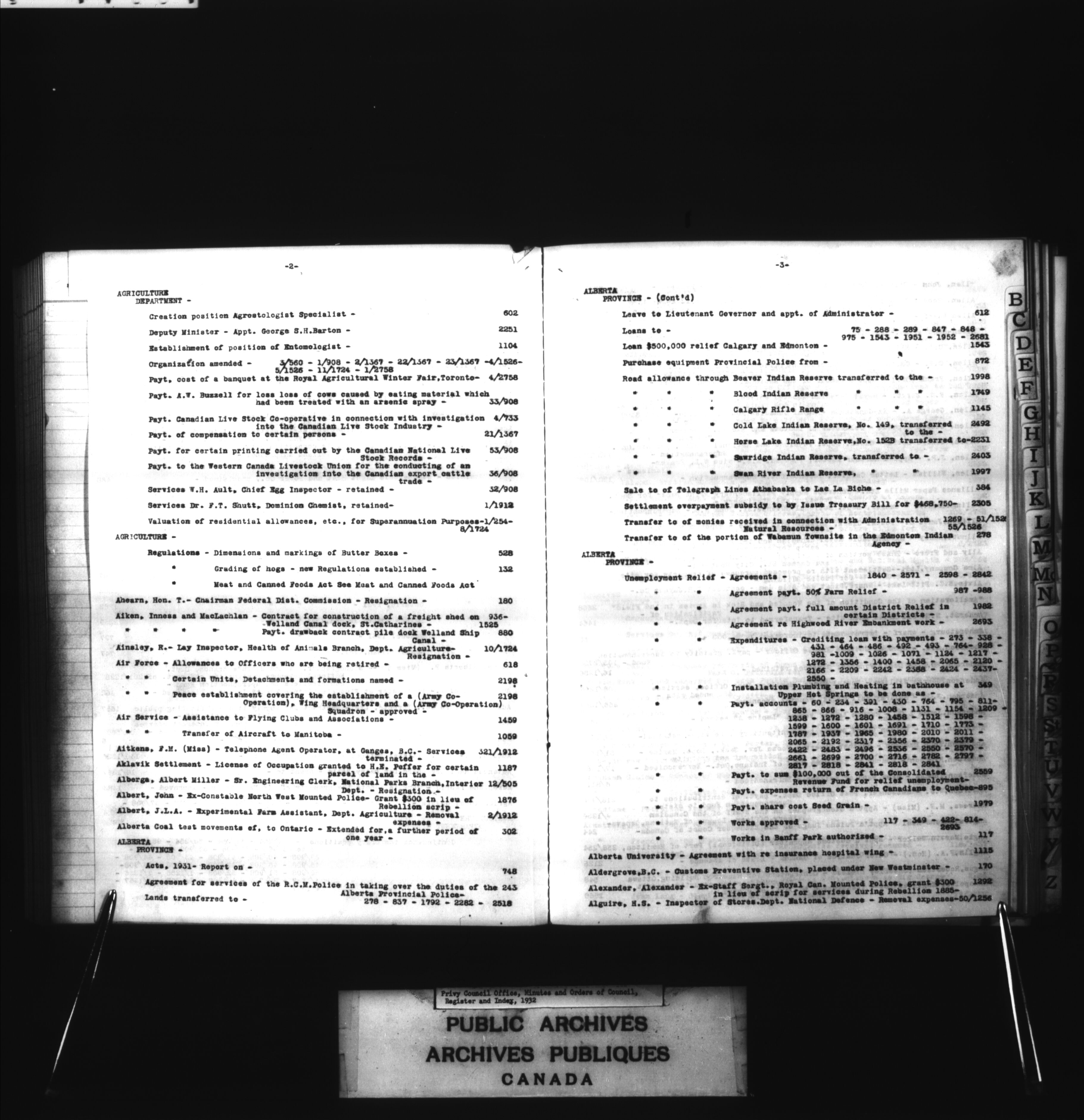 Privy Council Office, Orders in Council : indexes and registers : C-2089