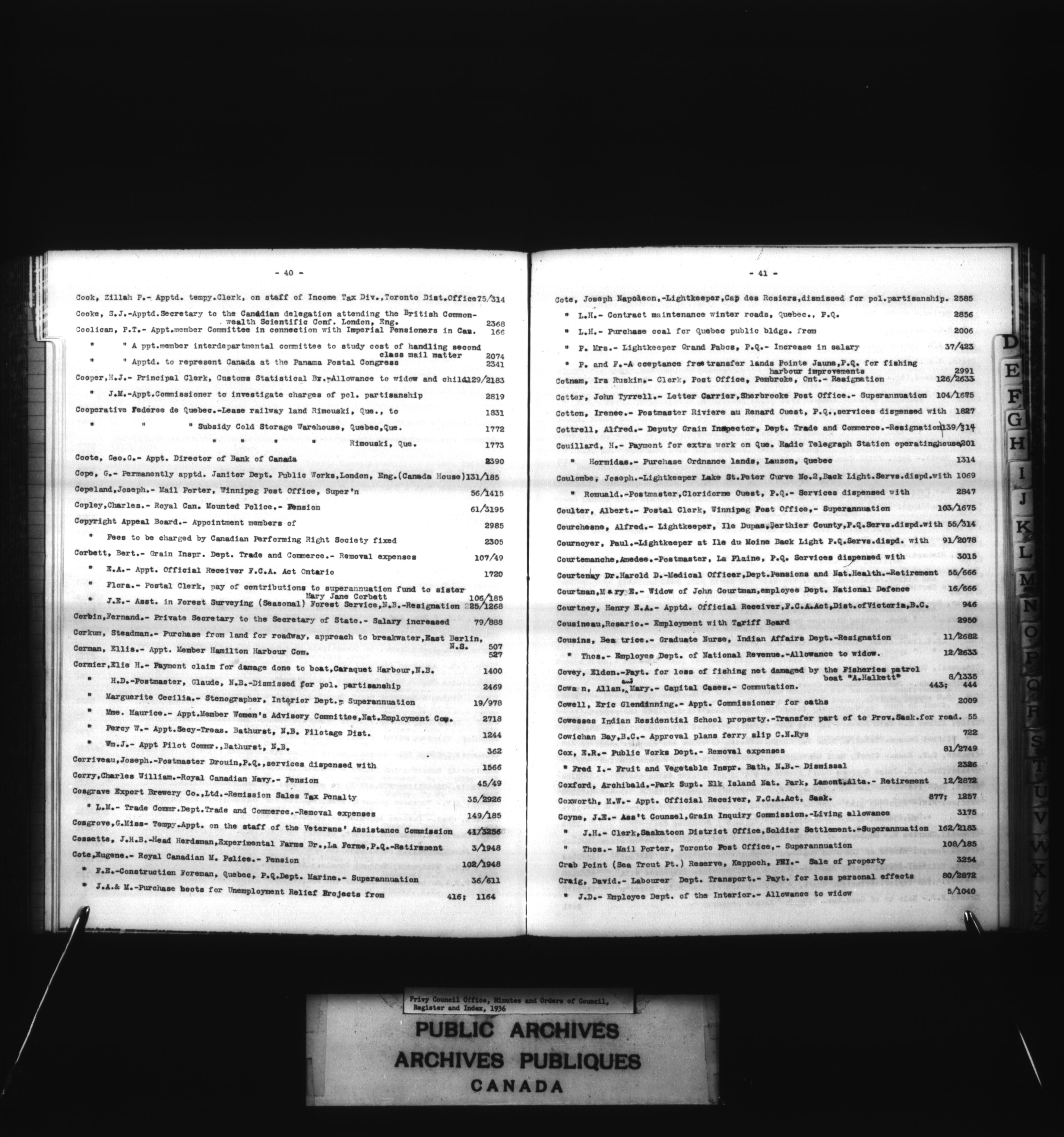 Privy Council Office, Minutes and Orders of Council : register and index