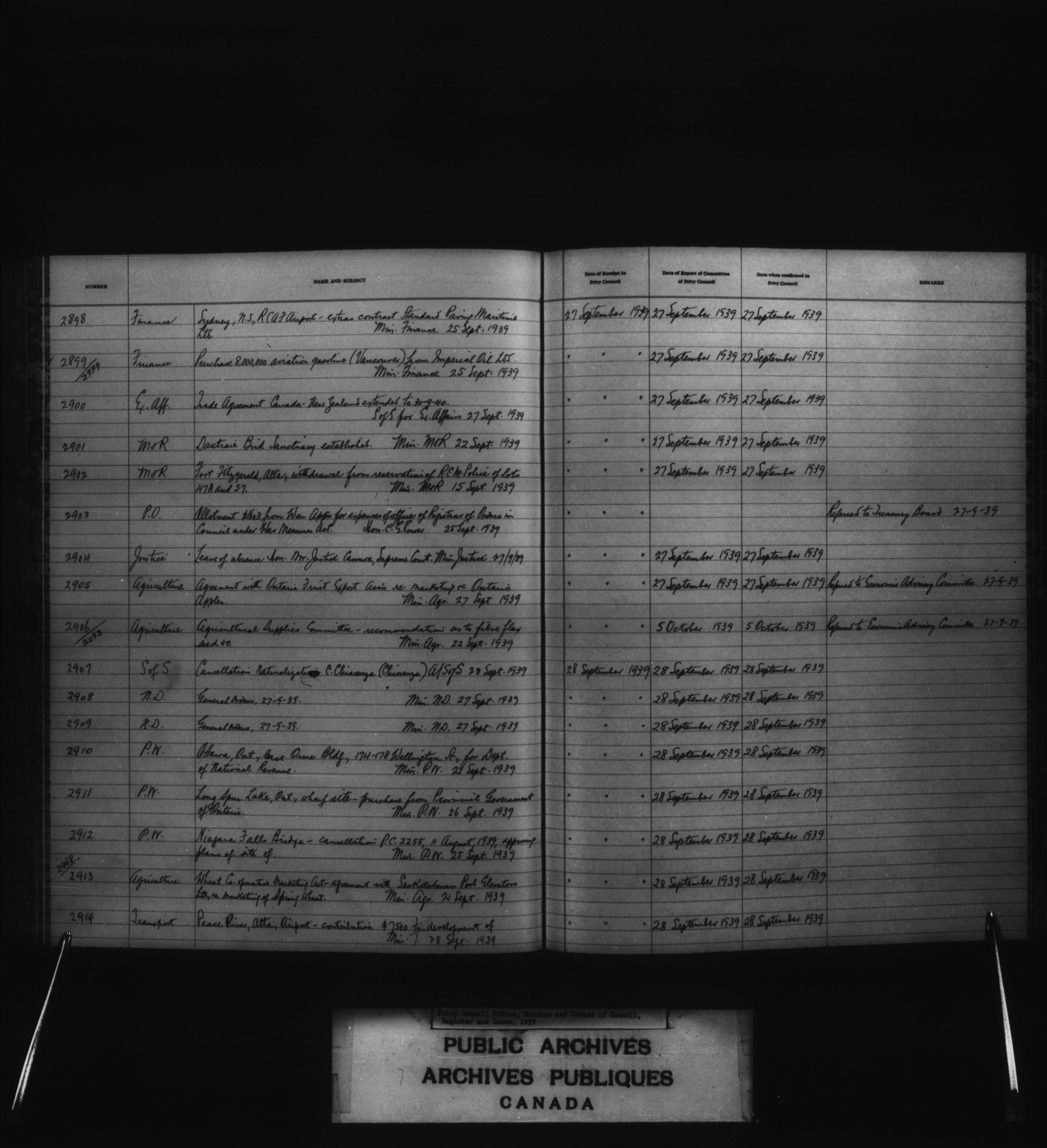 Privy Council Office, Orders in Council : indexes and registers : C-2093