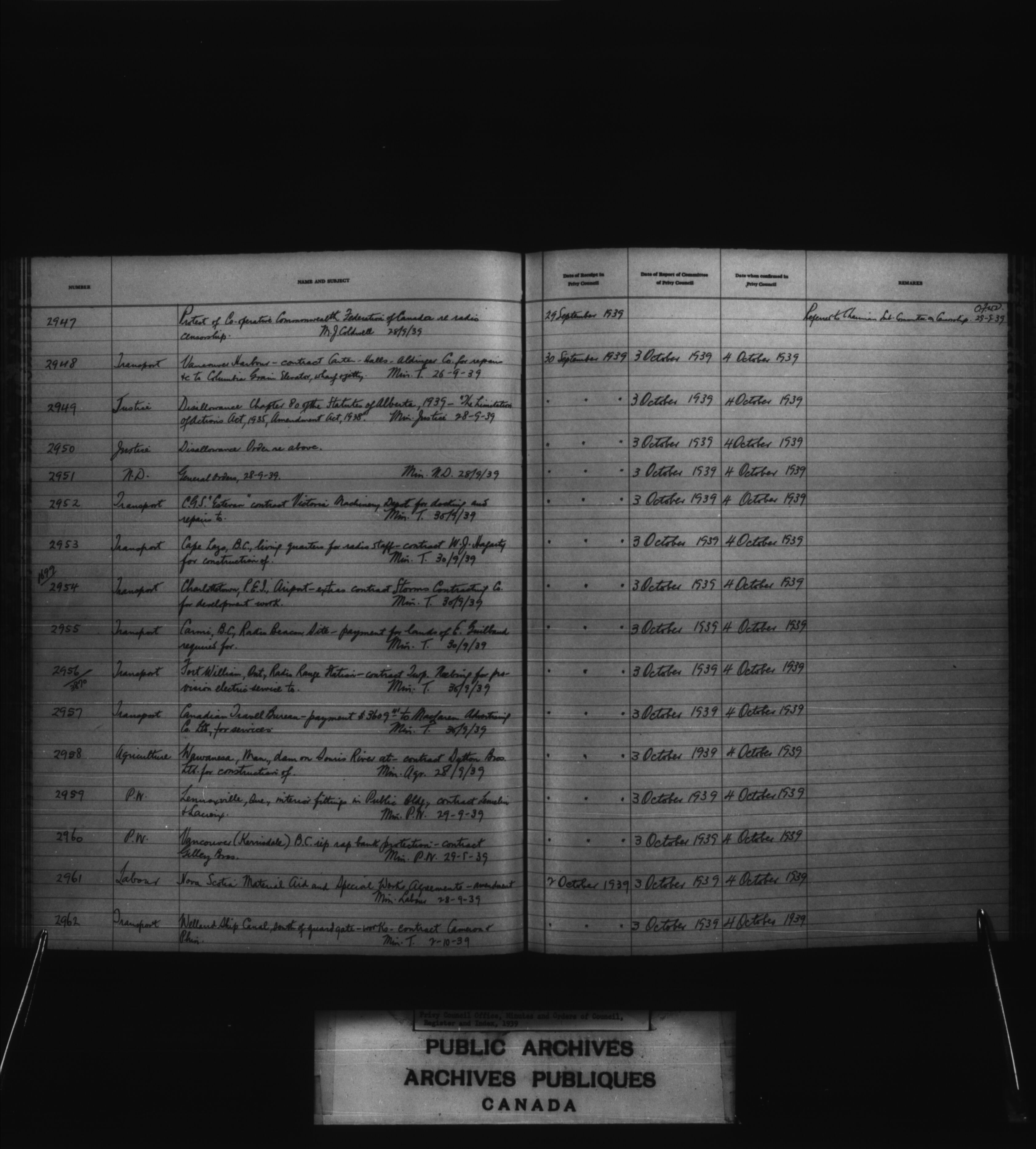 Privy Council Office, Orders in Council : indexes and registers : C-2093