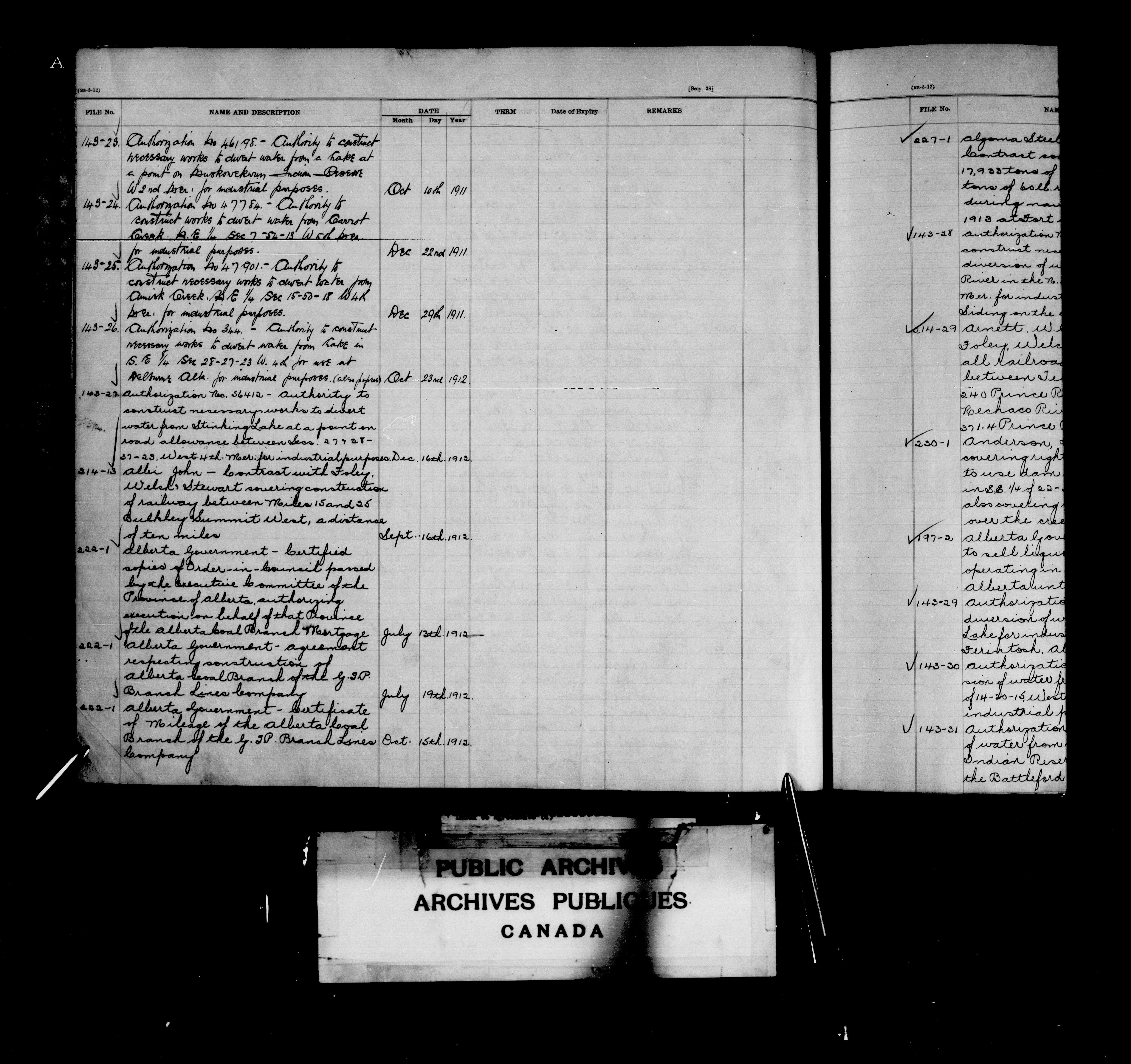 Grand Trunk Pacific Railway Company : Index to Agreements - 2094