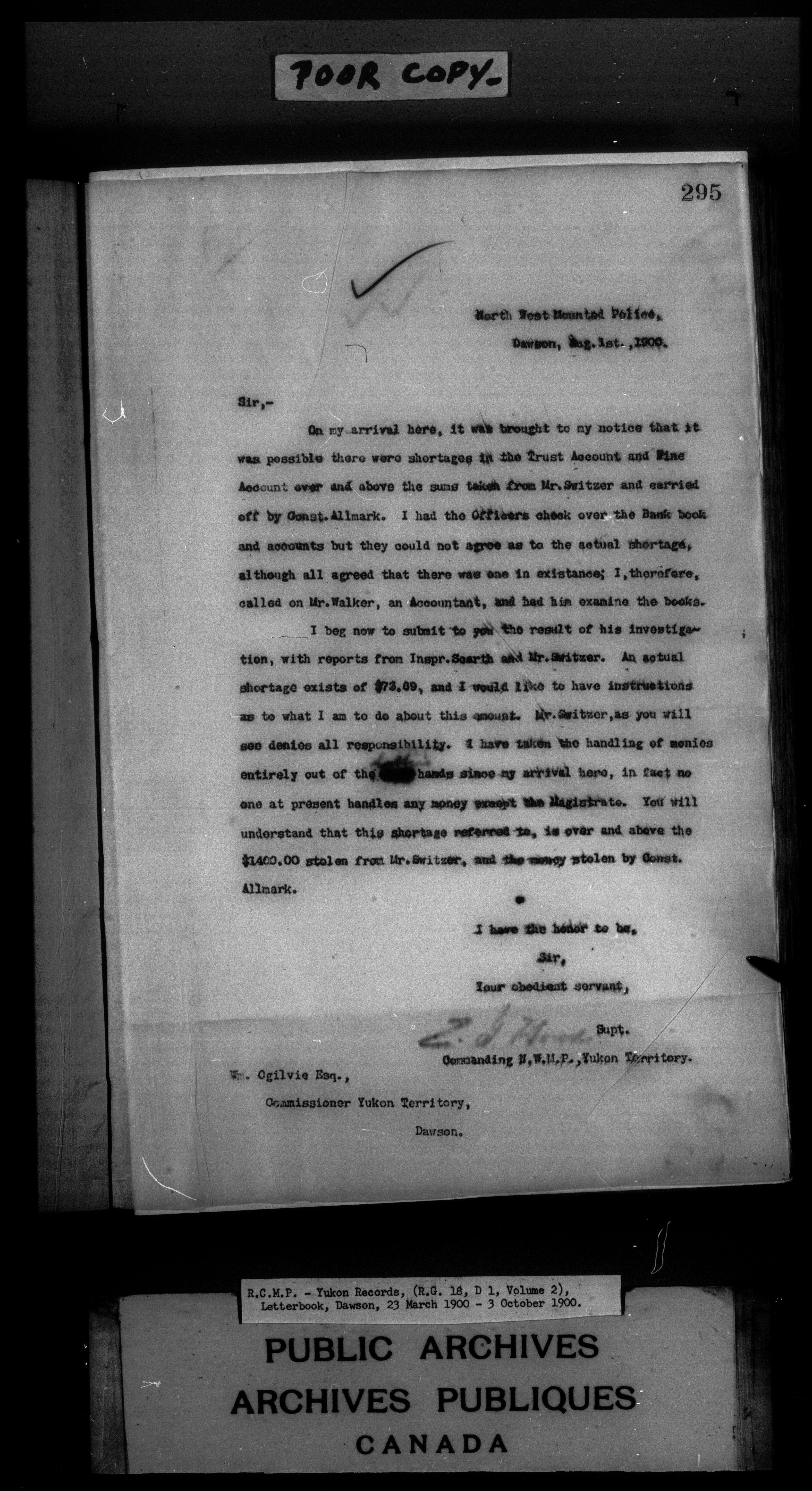 Superintendent of NWMP Yukon - Dawson City Letterbooks - 2143