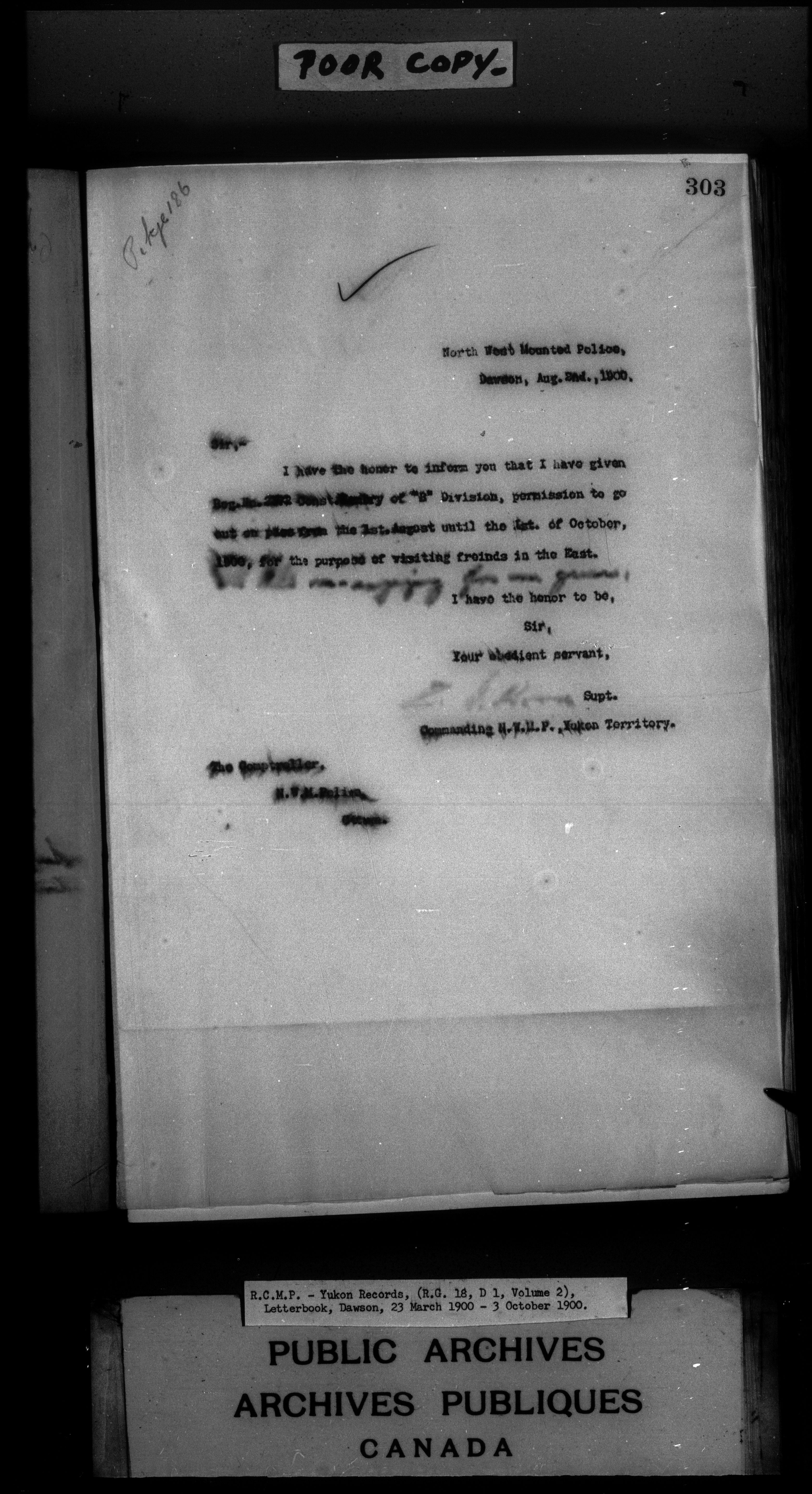 Superintendent of NWMP Yukon - Dawson City Letterbooks - 2143