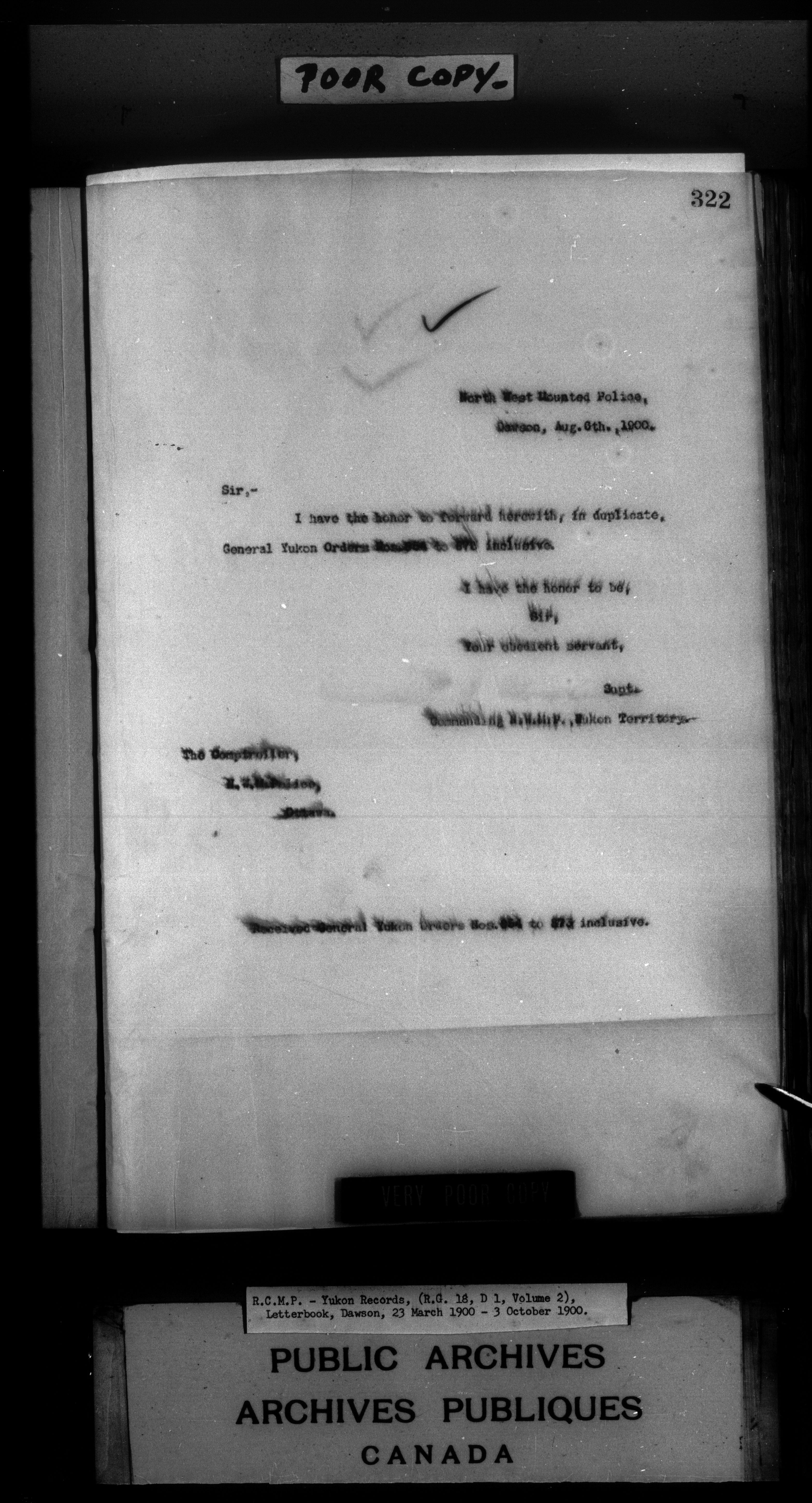 Superintendent of NWMP Yukon - Dawson City Letterbooks - 2143