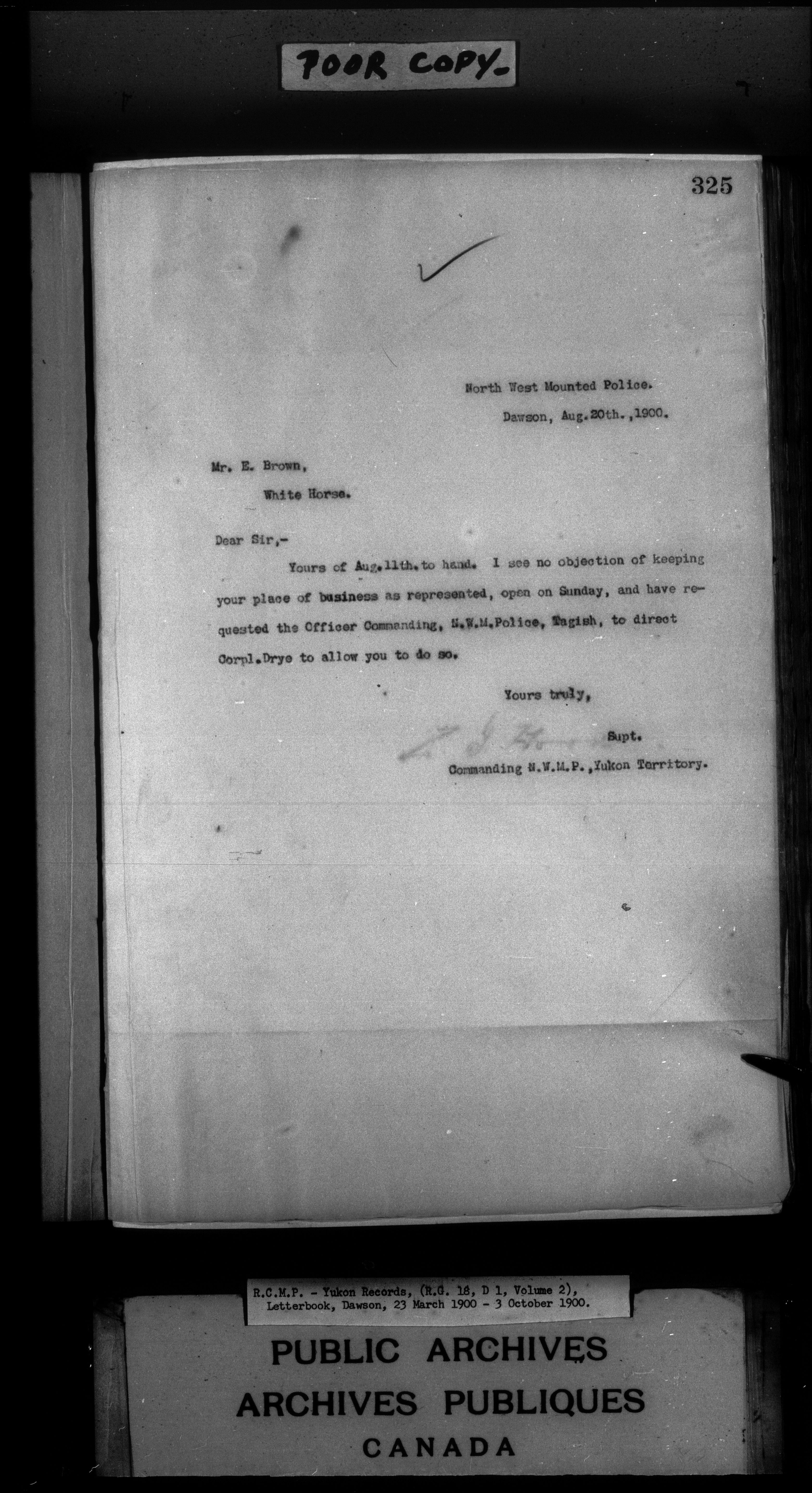 Superintendent of NWMP Yukon - Dawson City Letterbooks - 2143