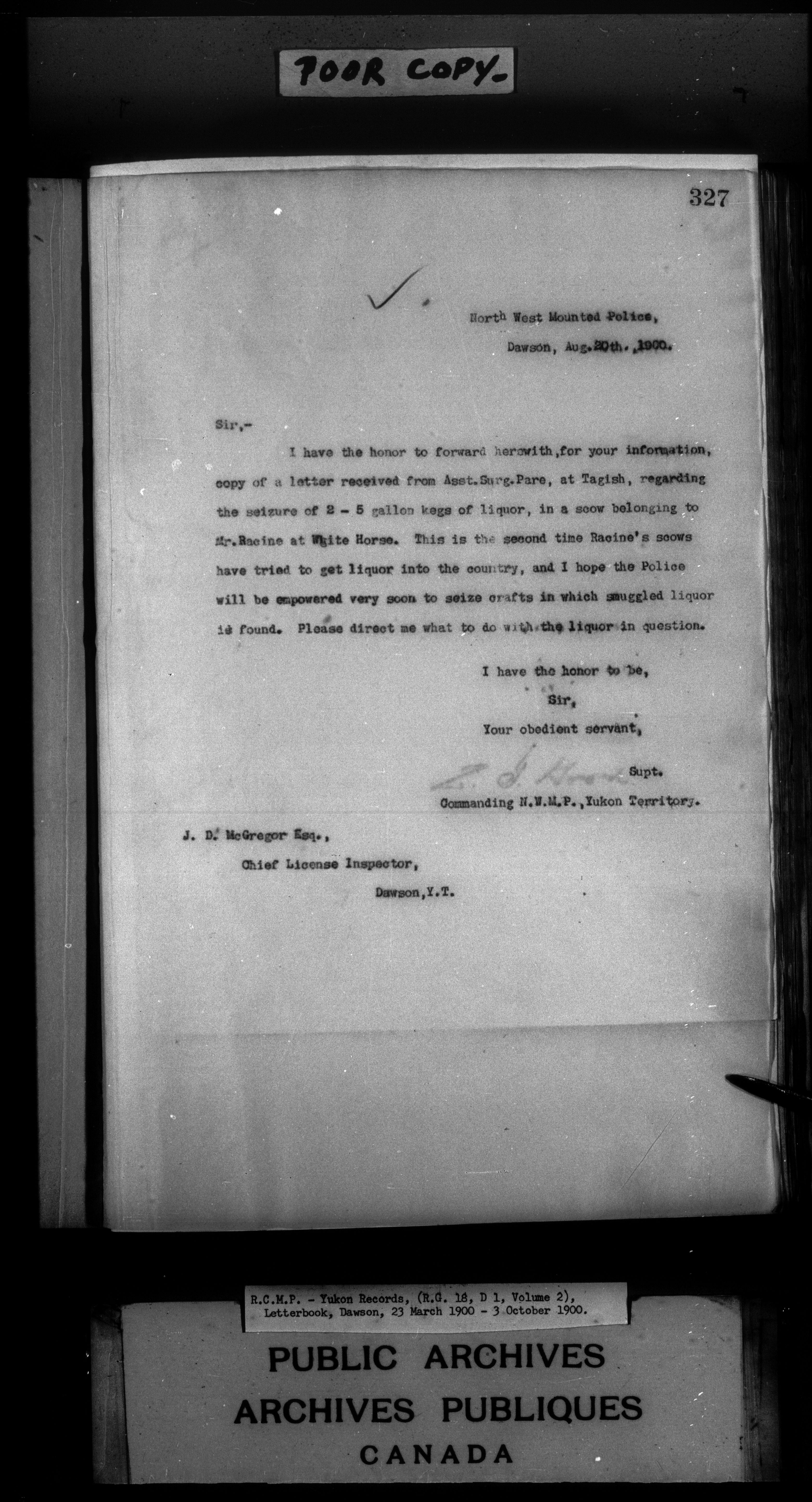 Superintendent of NWMP Yukon - Dawson City Letterbooks - 2143