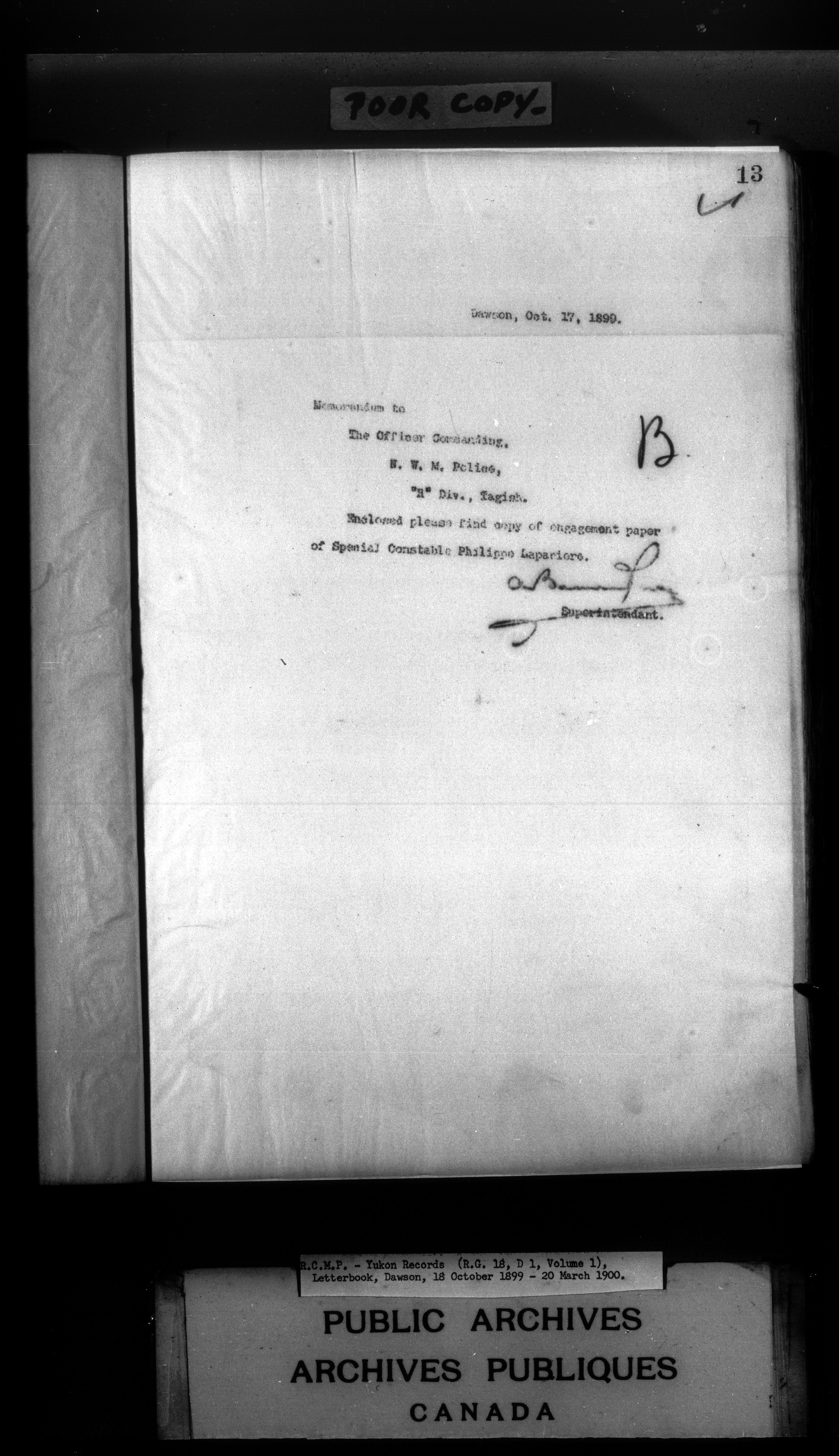 Superintendent of NWMP Yukon - Dawson City Letterbooks - 2143