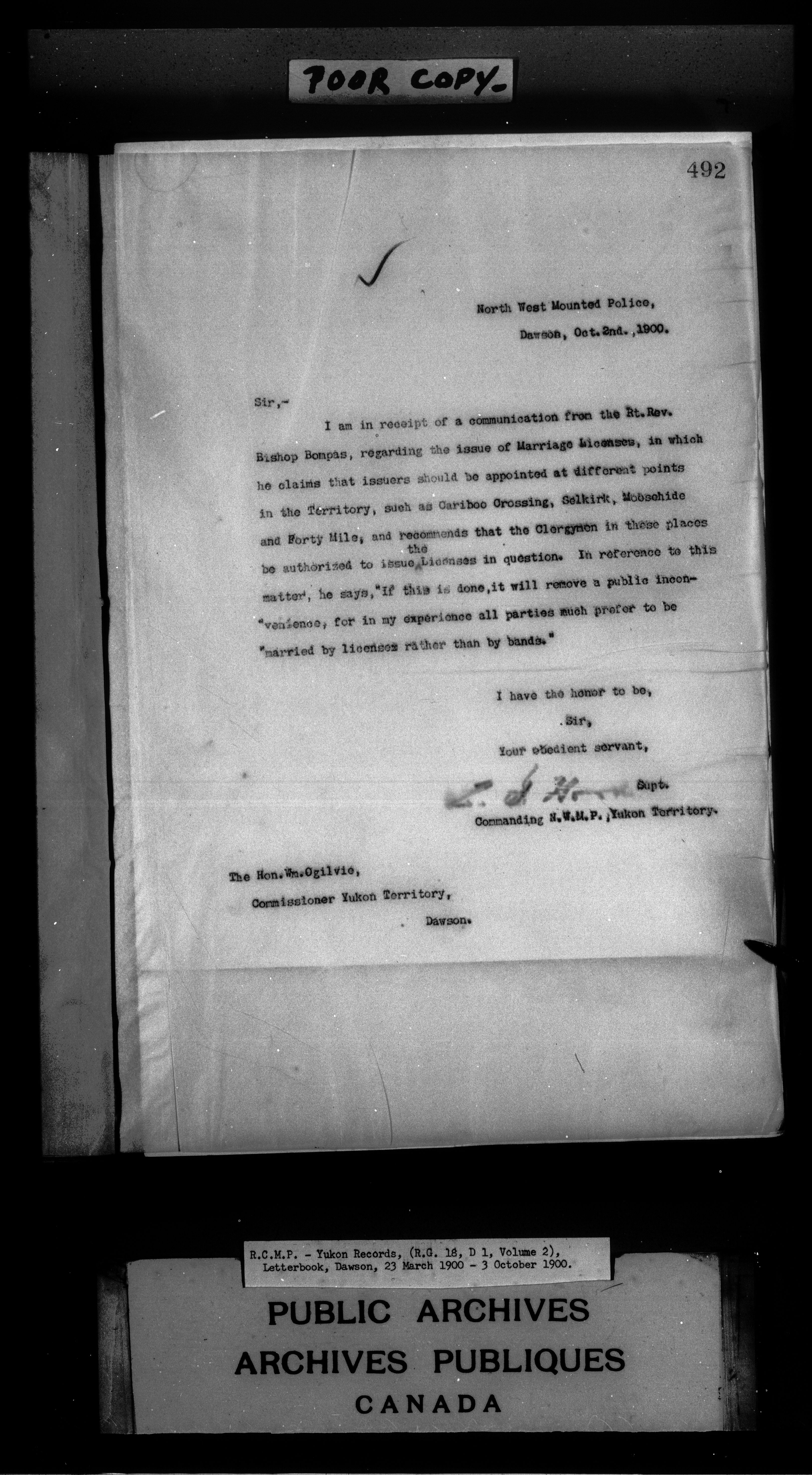 Superintendent of NWMP Yukon - Dawson City Letterbooks - 2144
