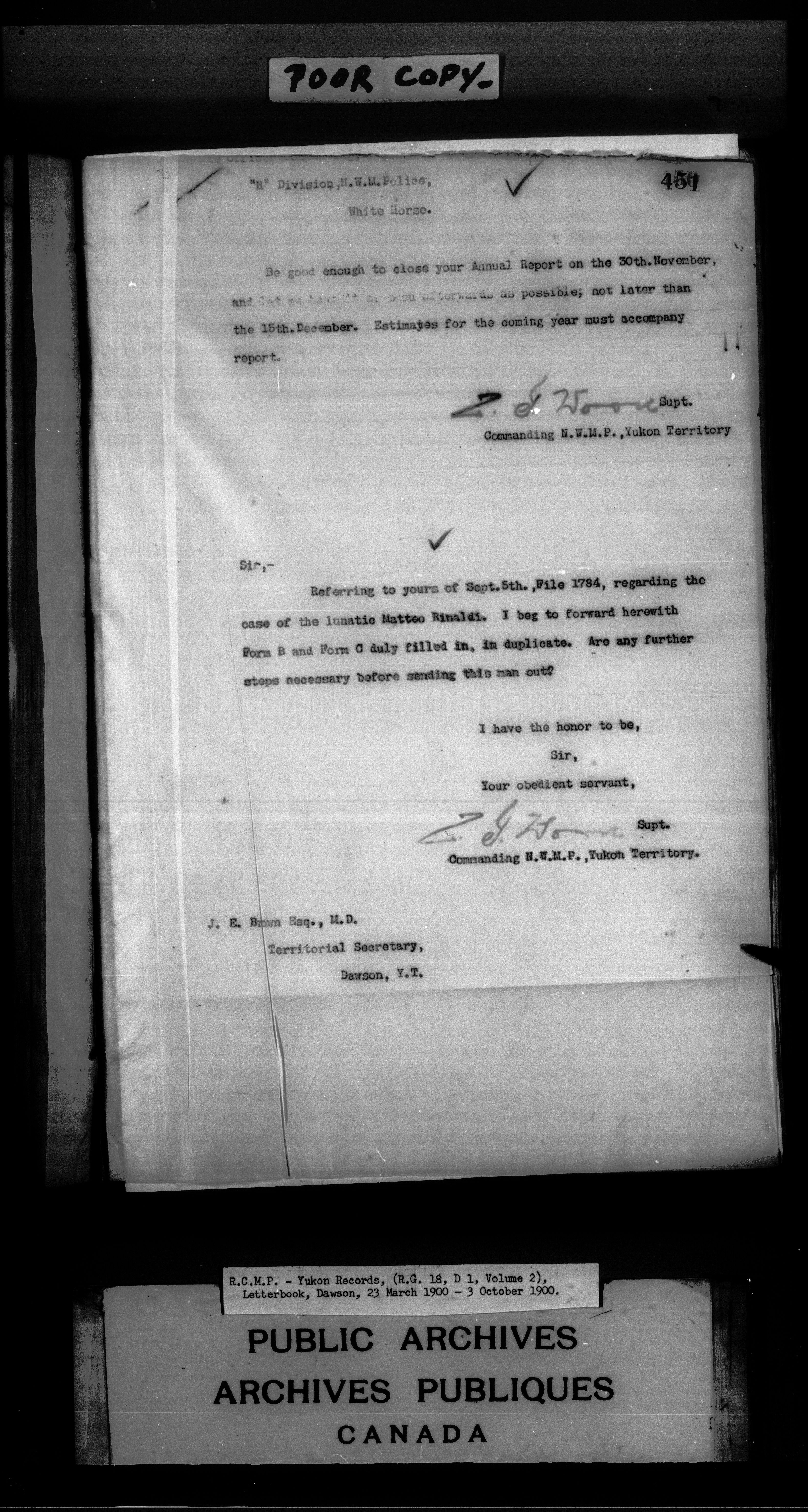 Superintendent of NWMP Yukon - Dawson City Letterbooks - 2144