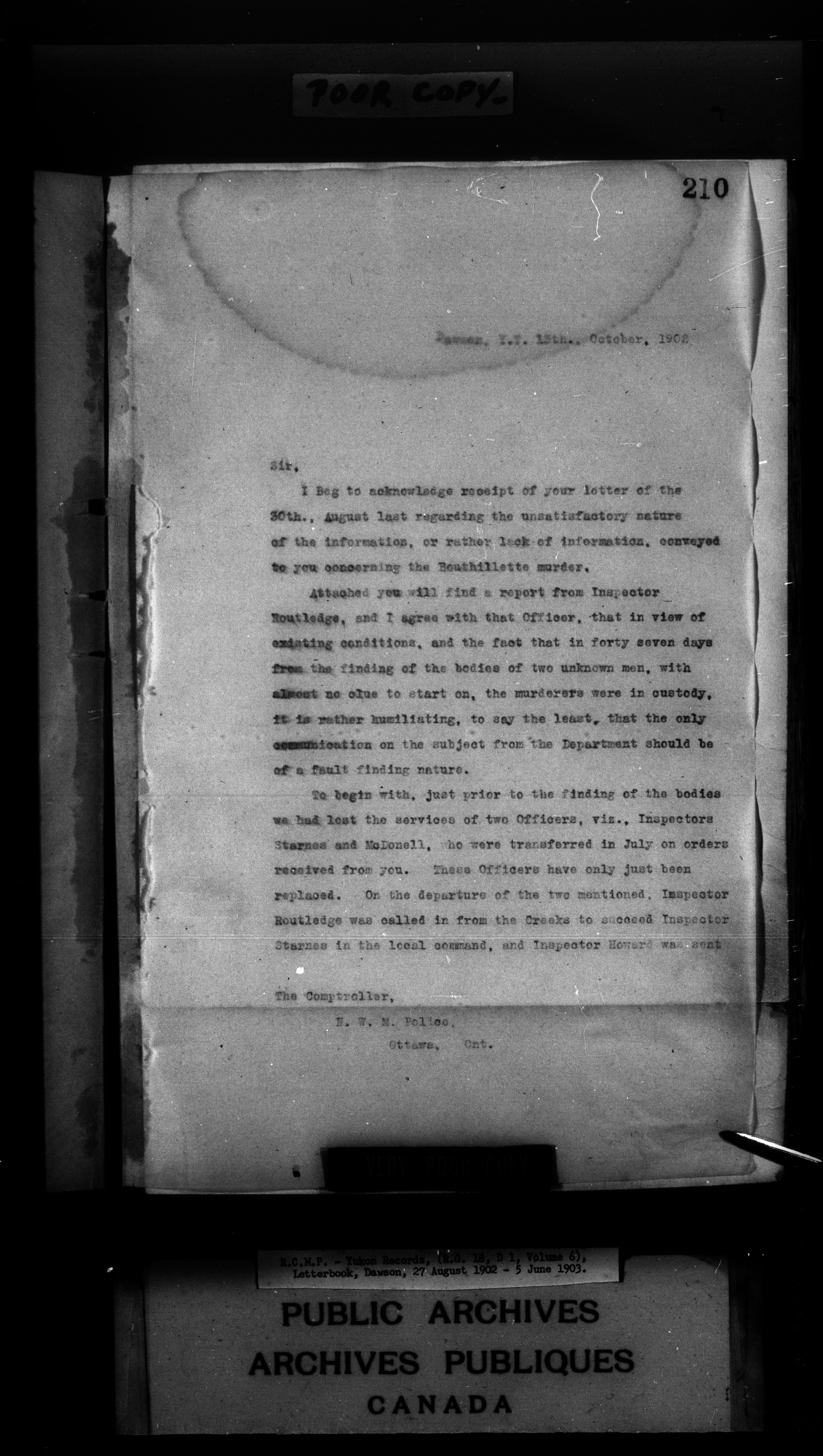 Superintendent of NWMP Yukon - Dawson City Letterbooks - 2145