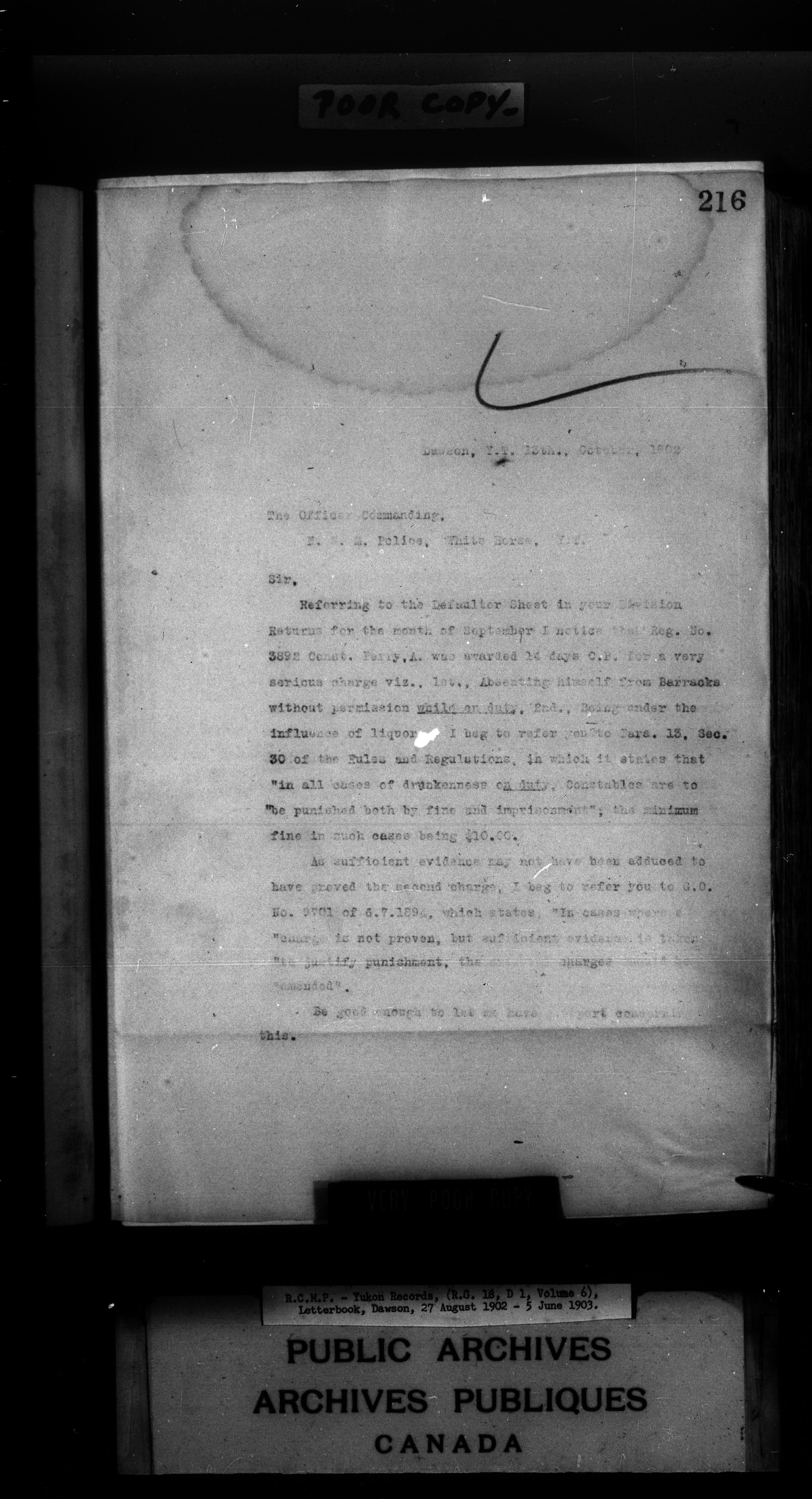 Superintendent of NWMP Yukon - Dawson City Letterbooks - 2145