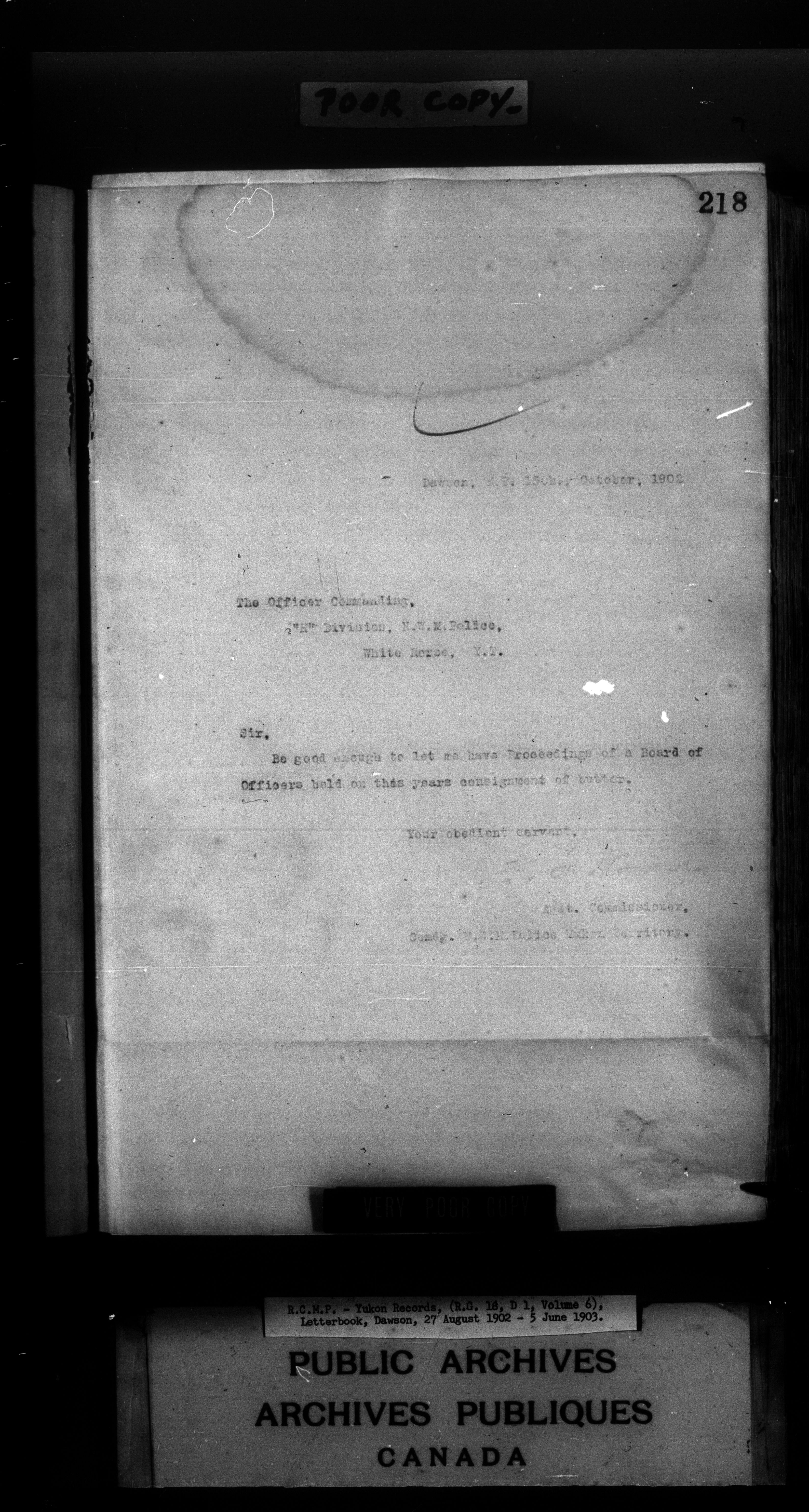 Superintendent of NWMP Yukon - Dawson City Letterbooks - 2145