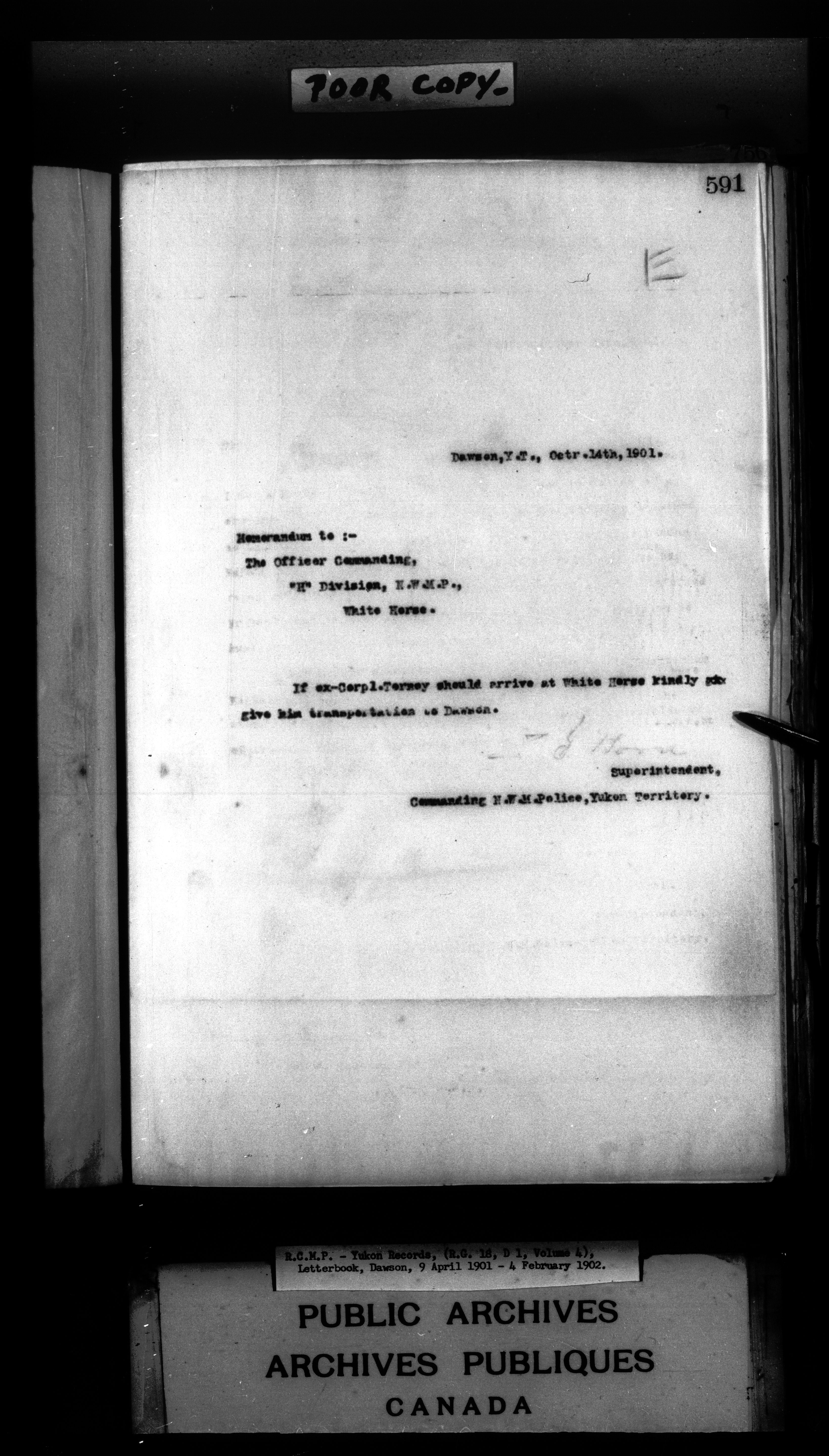 Superintendent of NWMP Yukon - Dawson City Letterbooks - 2145