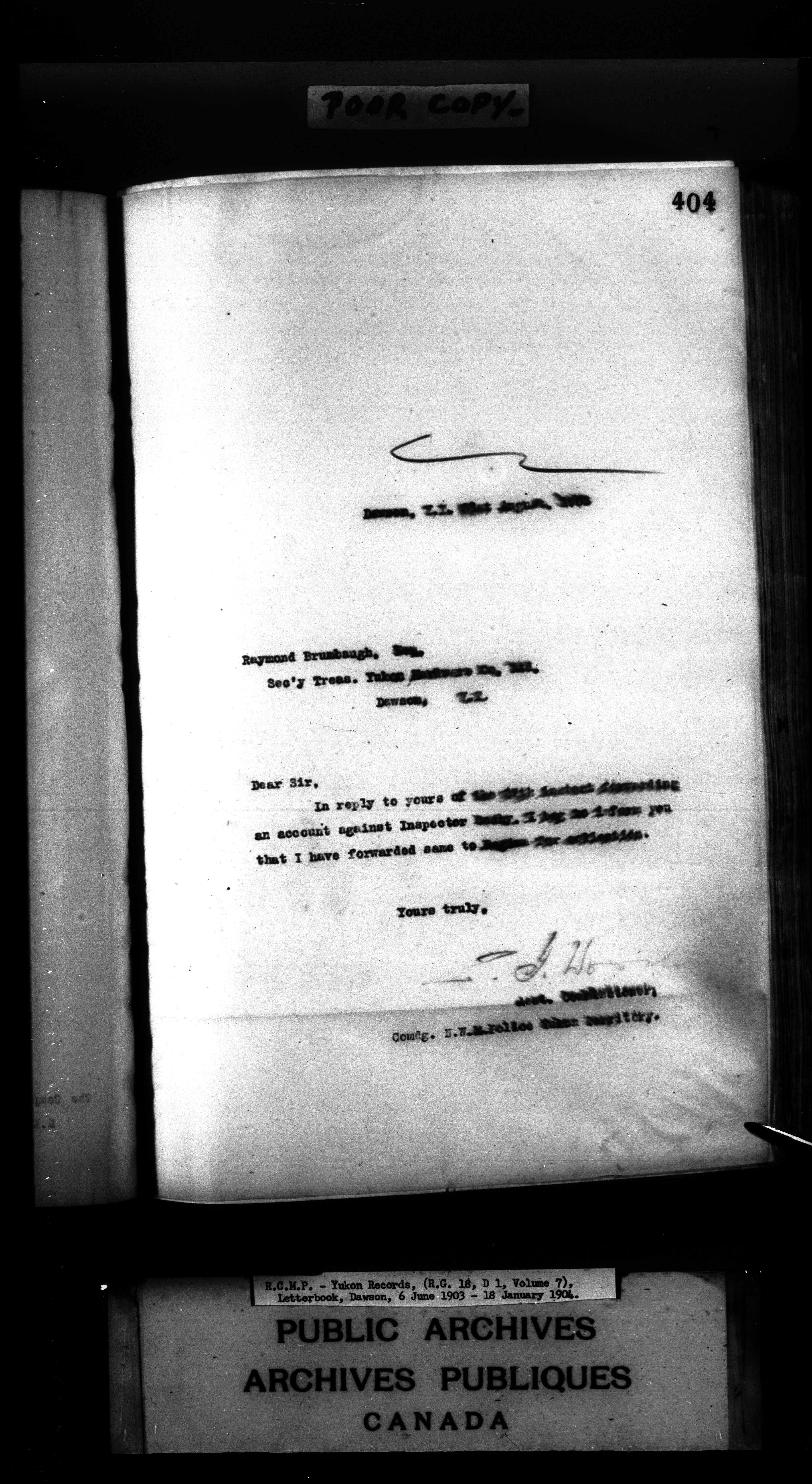 Superintendent of NWMP Yukon - Dawson City Letterbooks - 2146
