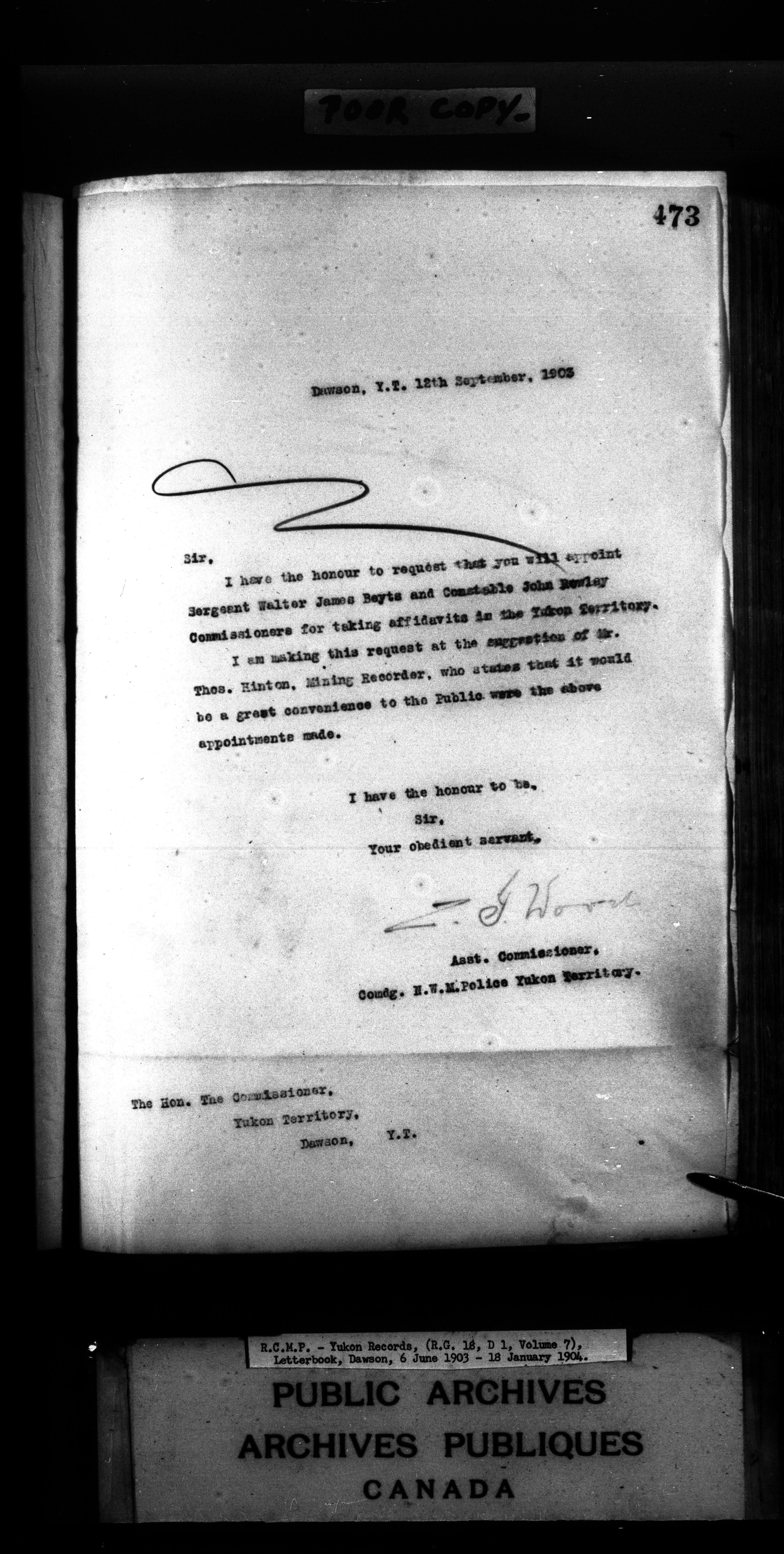 Superintendent of NWMP Yukon - Dawson City Letterbooks - 2146