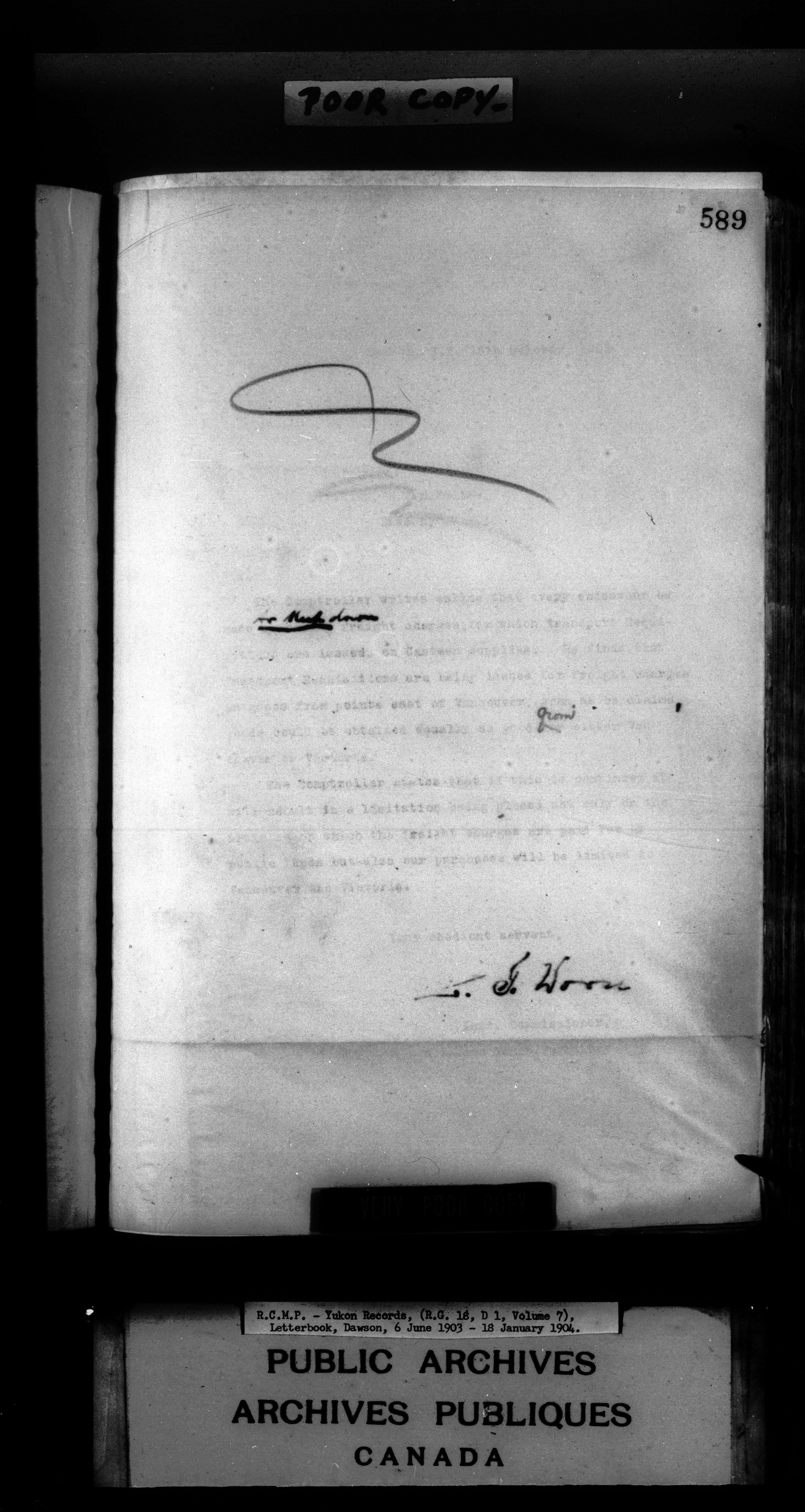 Superintendent of NWMP Yukon - Dawson City Letterbooks - 2147