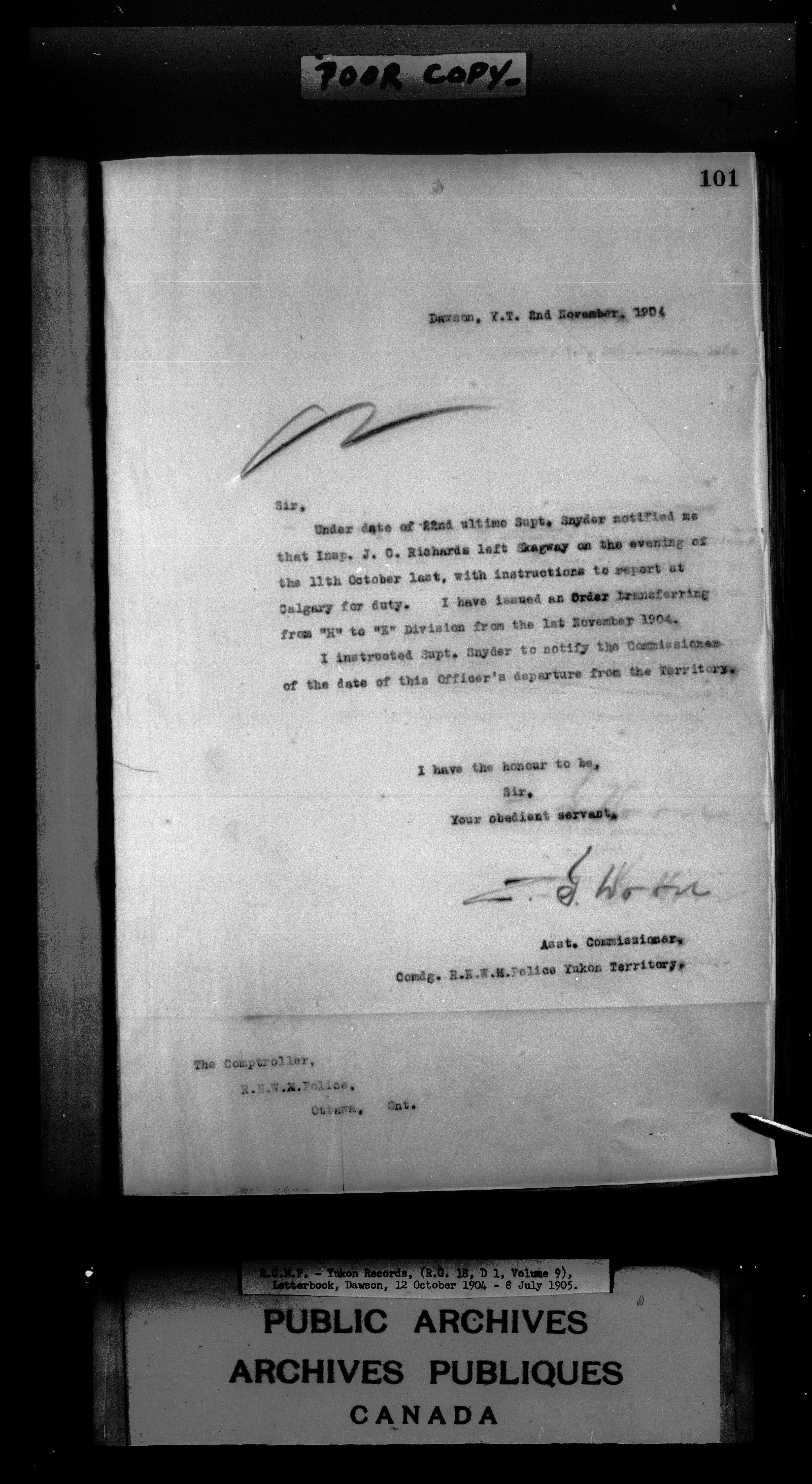 Superintendent of NWMP Yukon - Dawson City Letterbooks - 2148