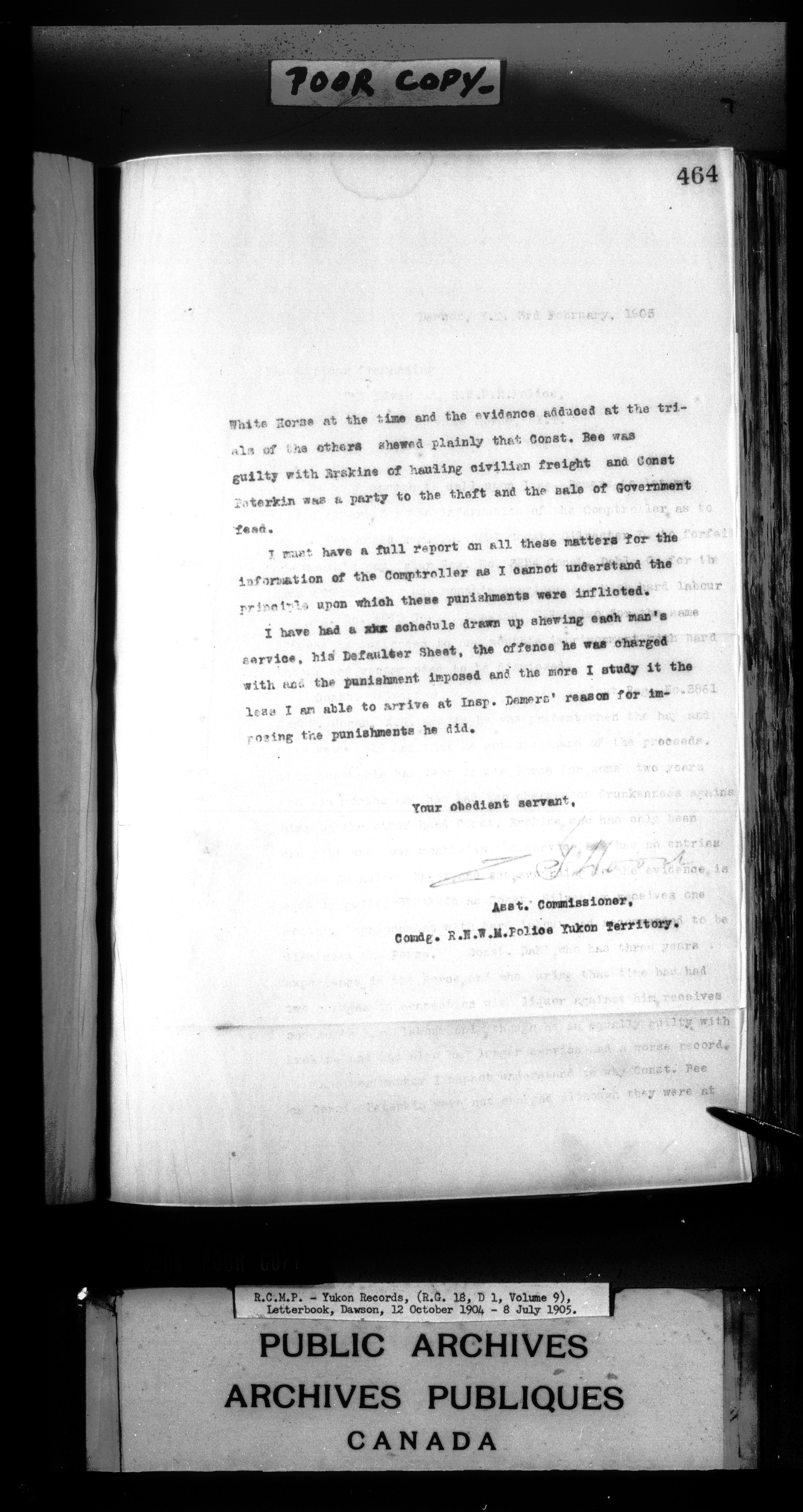 Superintendent of NWMP Yukon - Dawson City Letterbooks - 2148