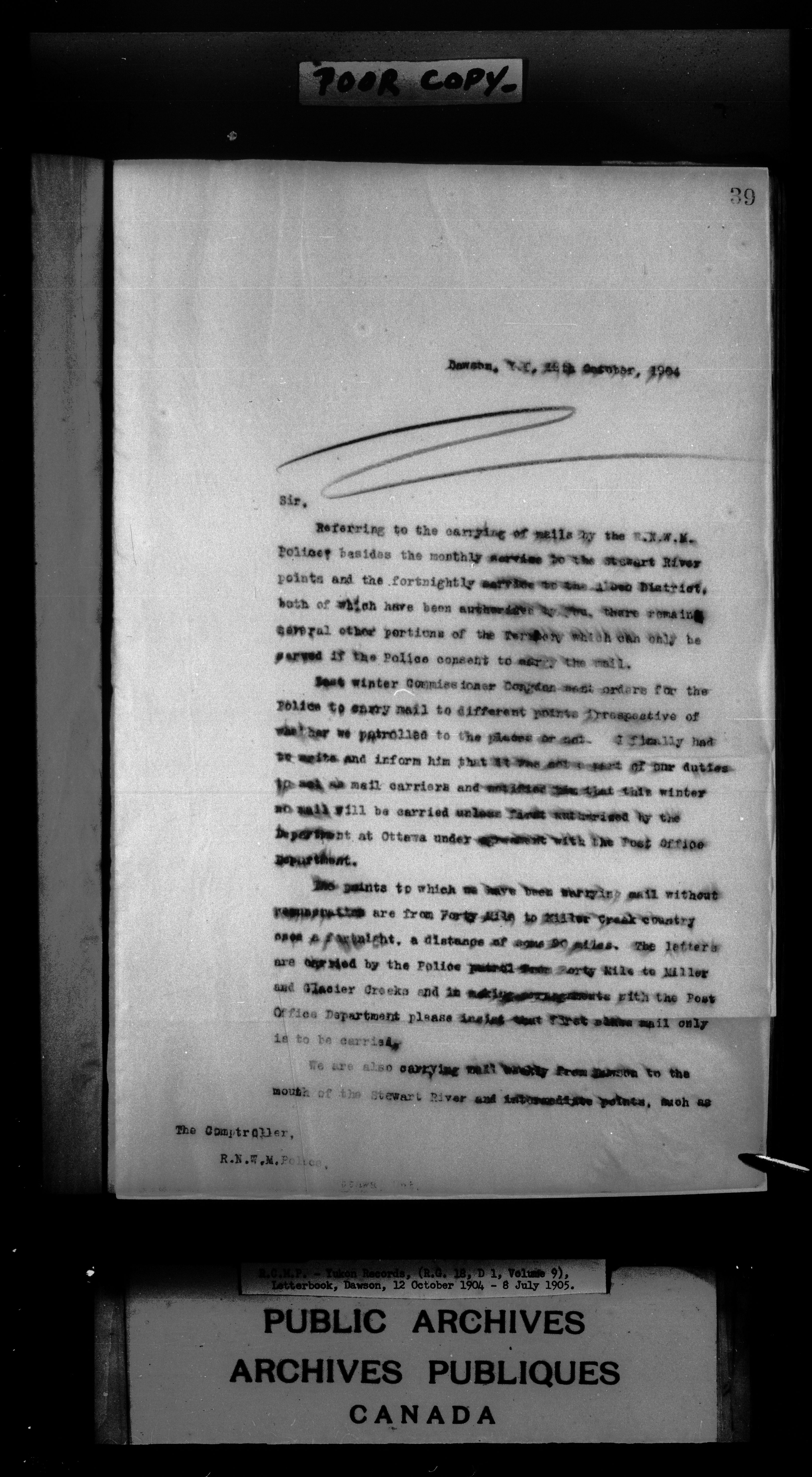 Superintendent of NWMP Yukon - Dawson City Letterbooks - 2148