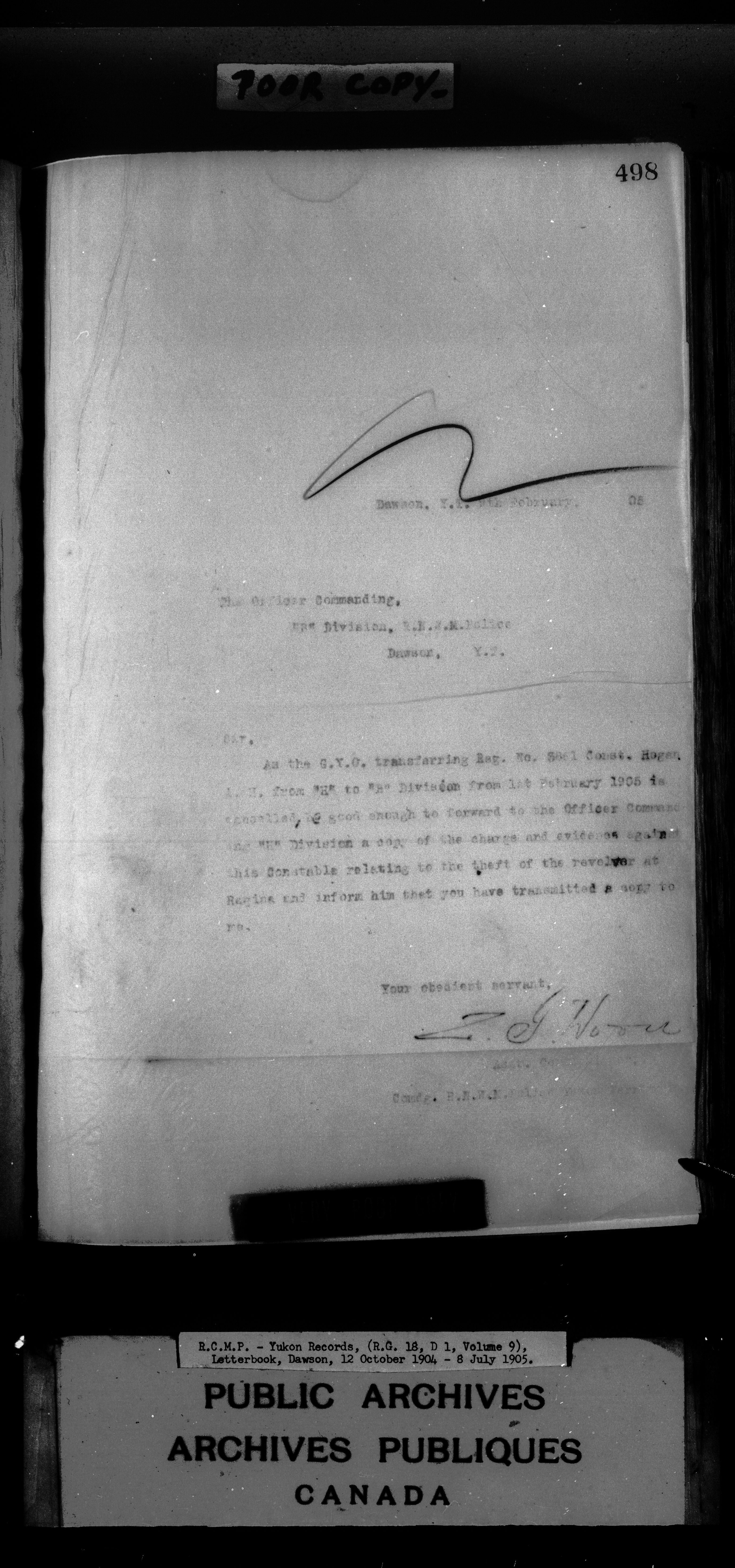 Superintendent of NWMP Yukon - Dawson City Letterbooks - 2148