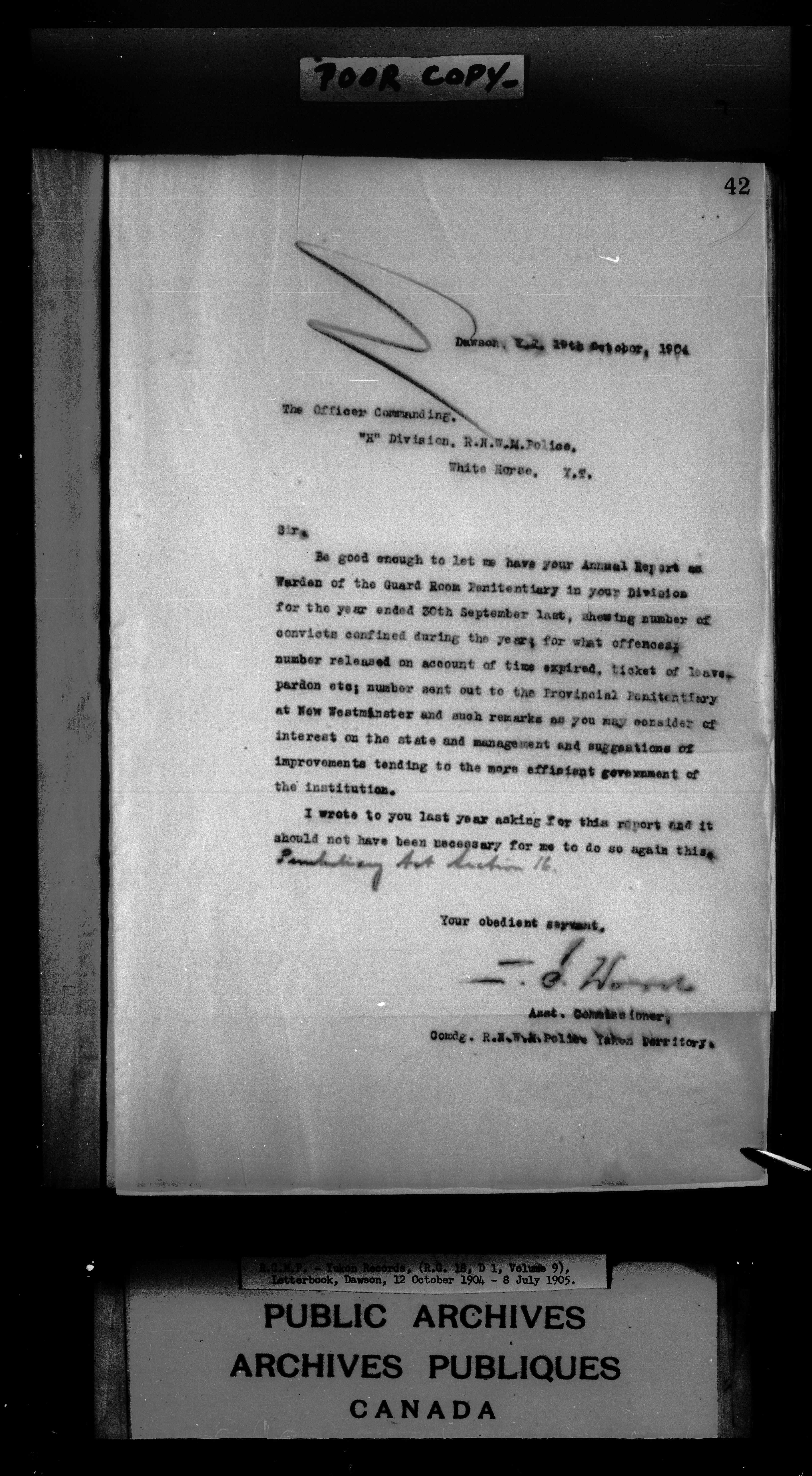 Superintendent of NWMP Yukon - Dawson City Letterbooks - 2148