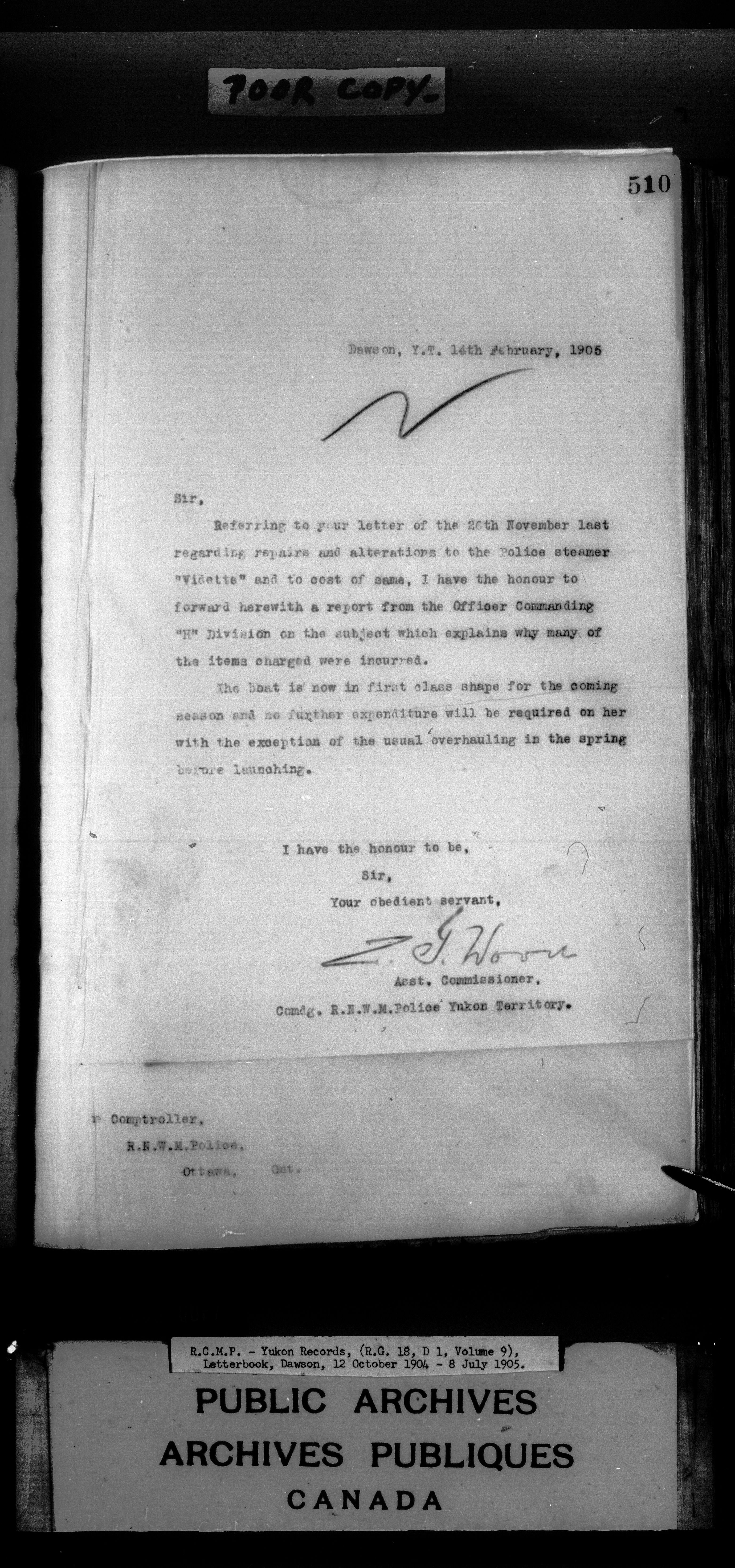 Superintendent of NWMP Yukon - Dawson City Letterbooks - 2148