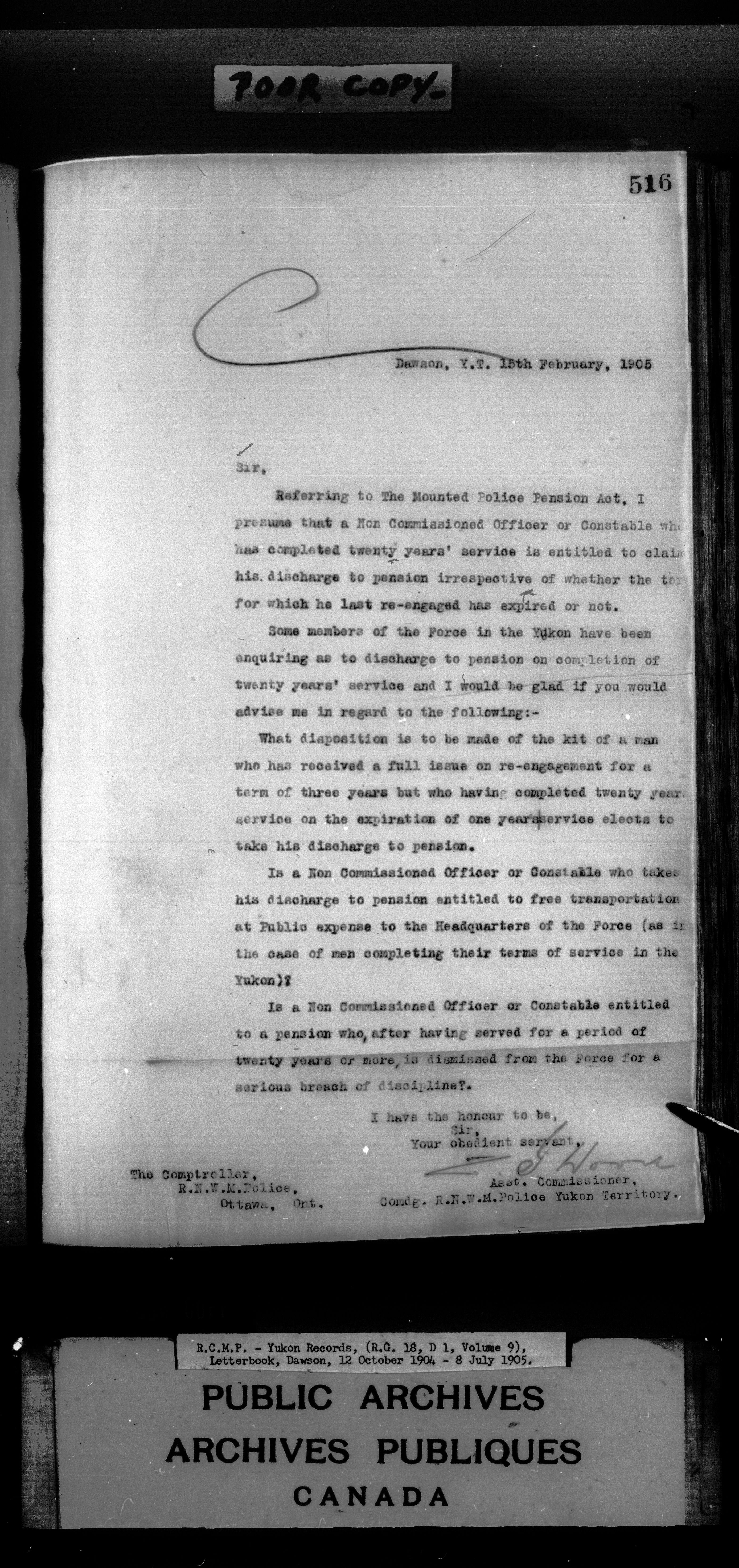 Superintendent of NWMP Yukon - Dawson City Letterbooks - 2148