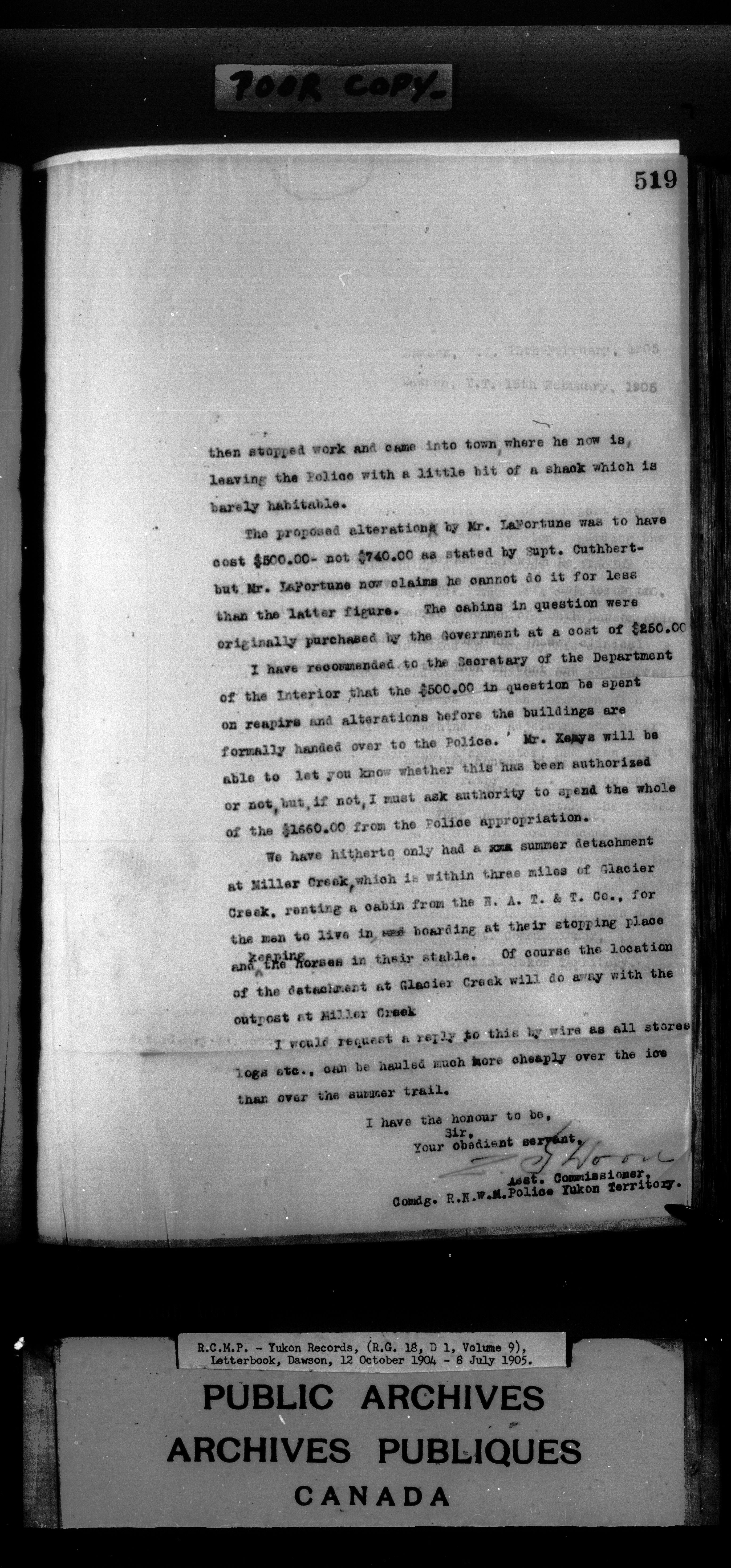Superintendent of NWMP Yukon - Dawson City Letterbooks - 2148