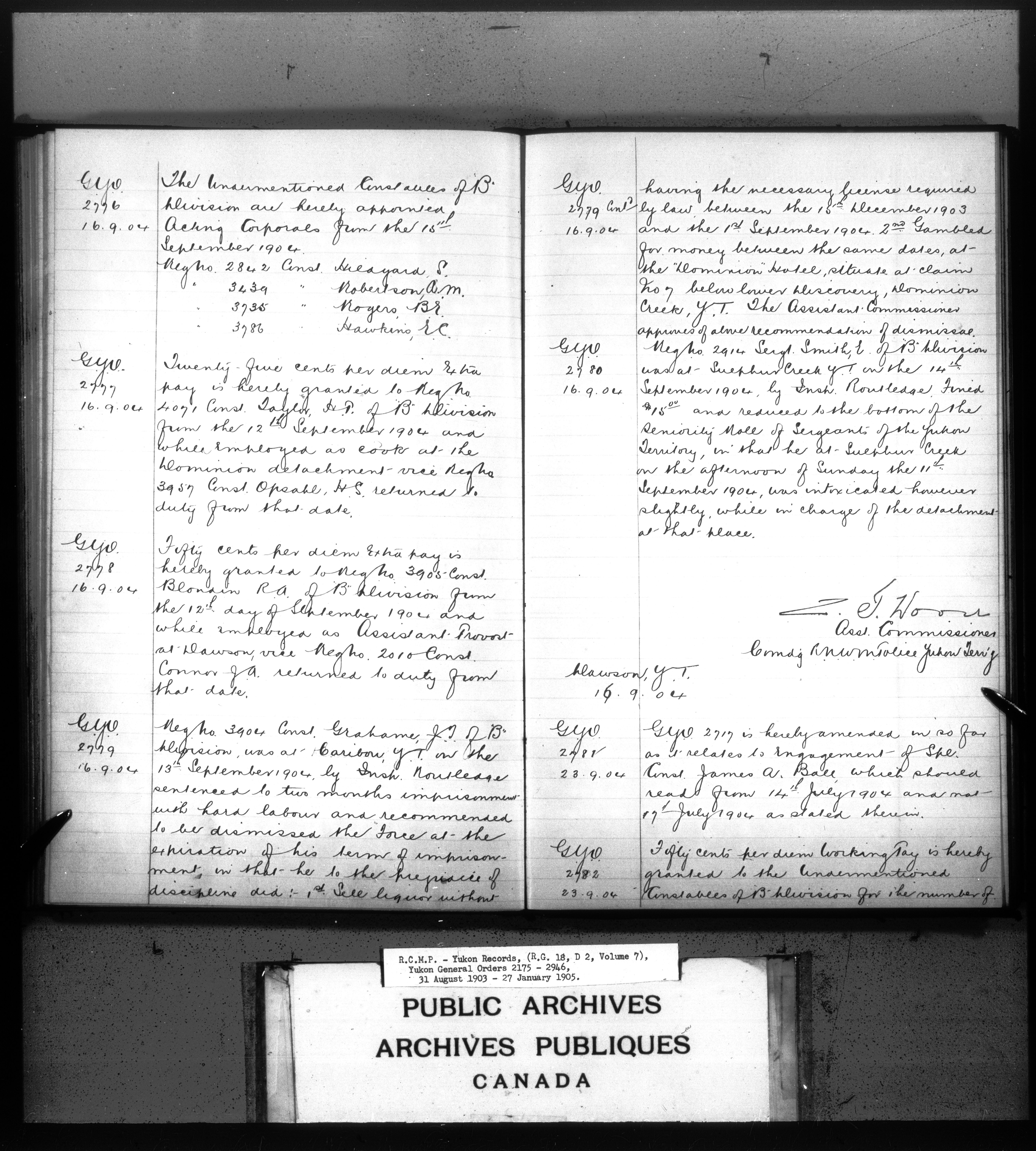 Index to general orders of the North-West Mounted Police, Yukon terrritory - 2150