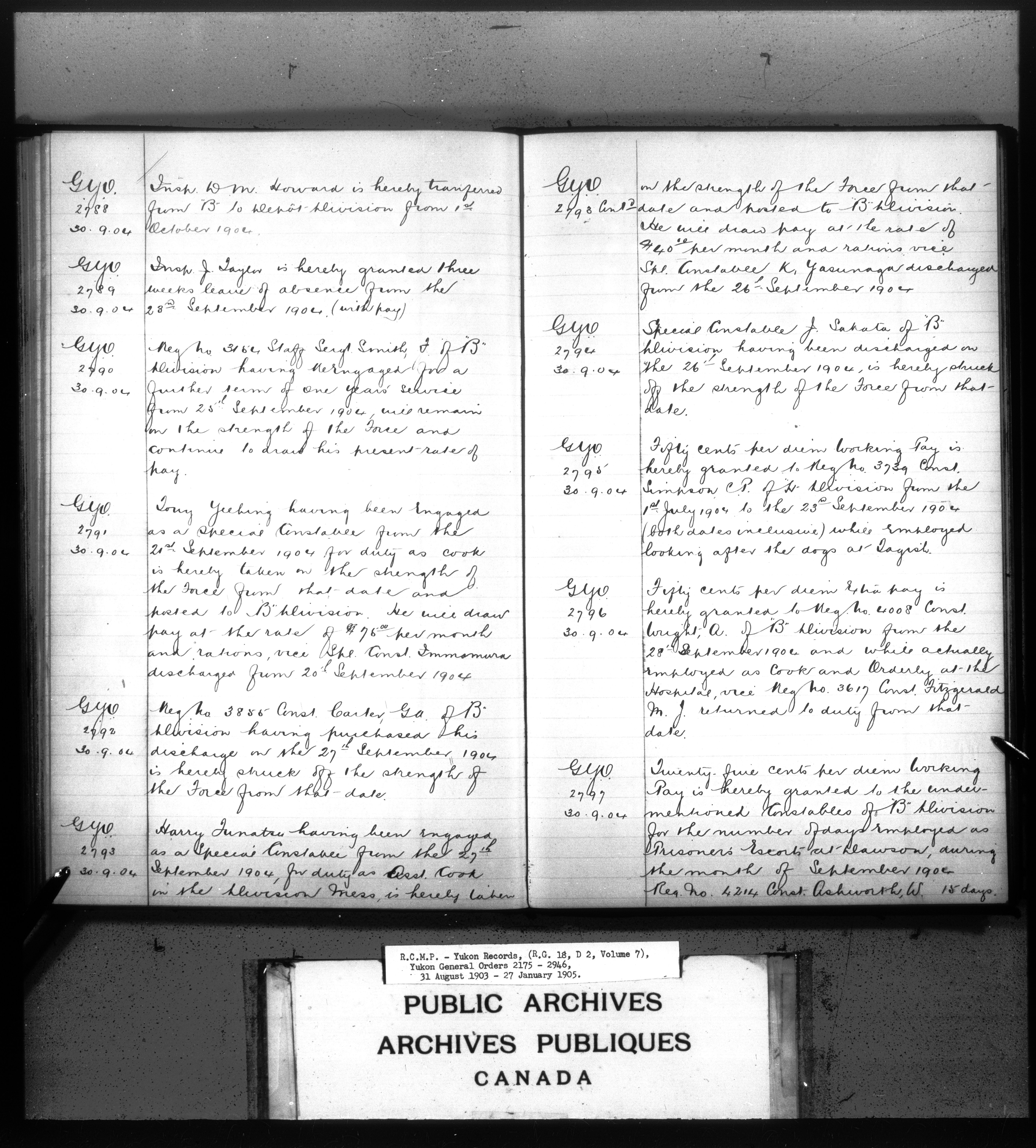Index to general orders of the North-West Mounted Police, Yukon terrritory - 2150
