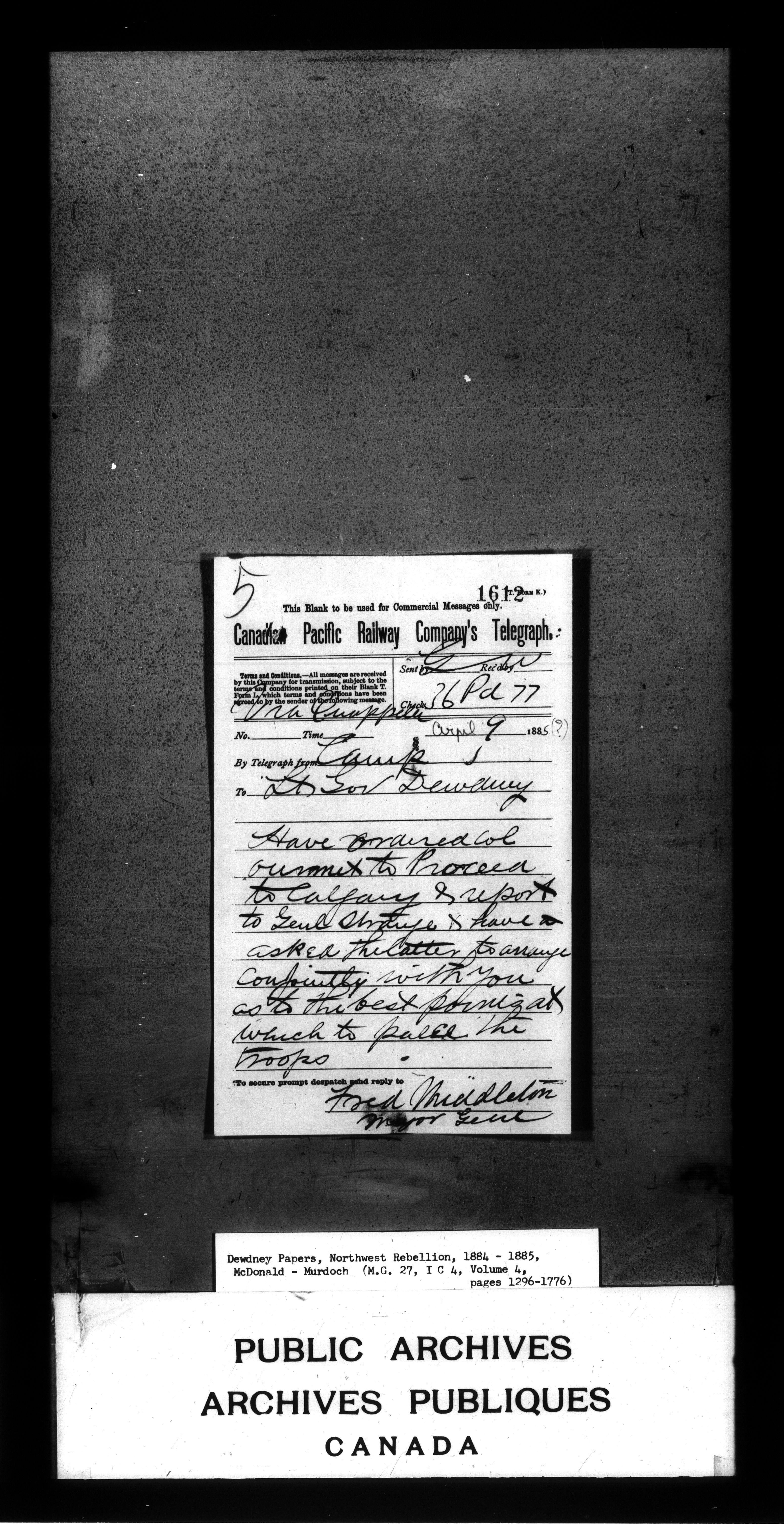 Edgar Dewdney : Northwest Rebellion papers, 1884-1885 - 2161