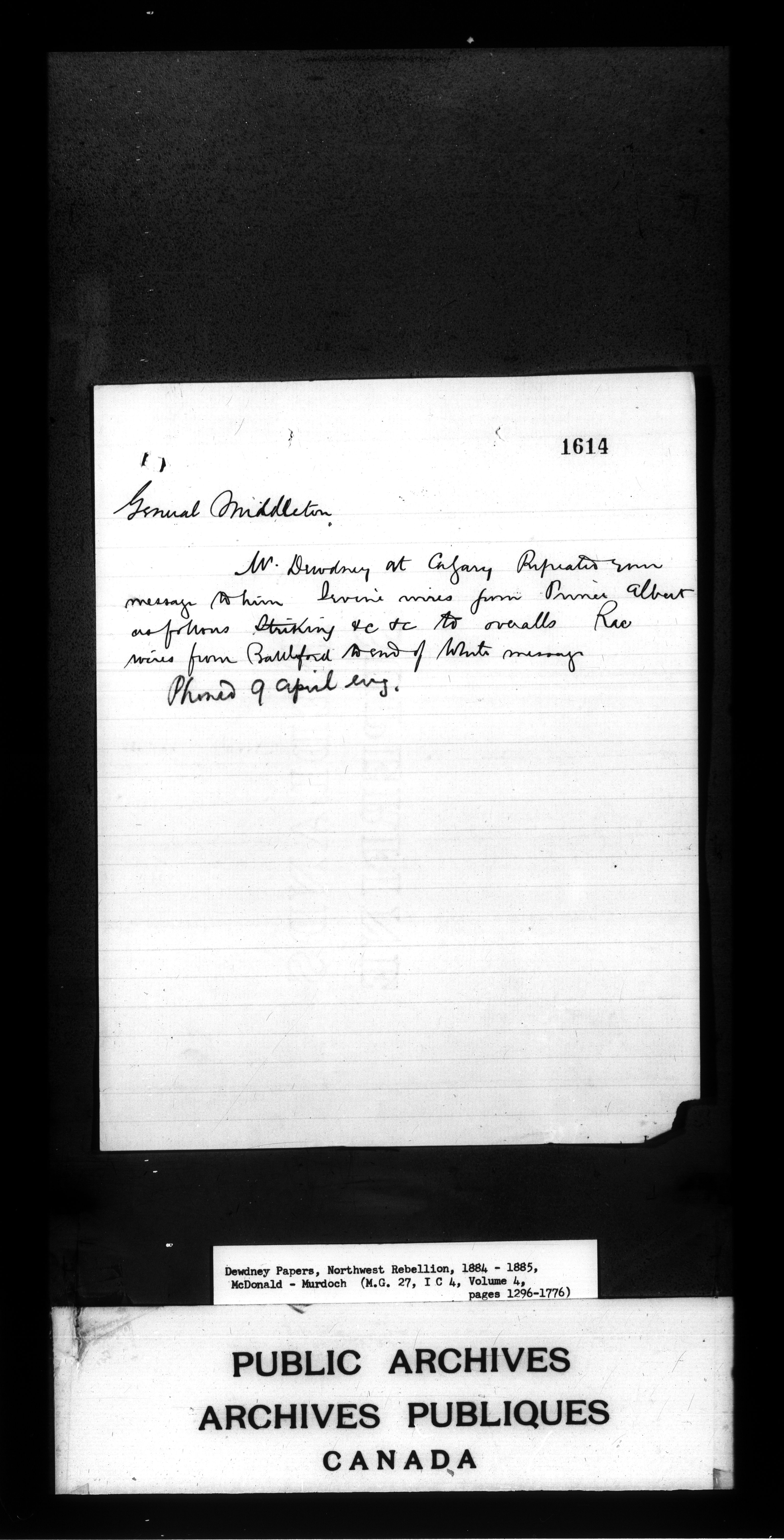 Edgar Dewdney : Northwest Rebellion papers, 1884-1885 - 2161