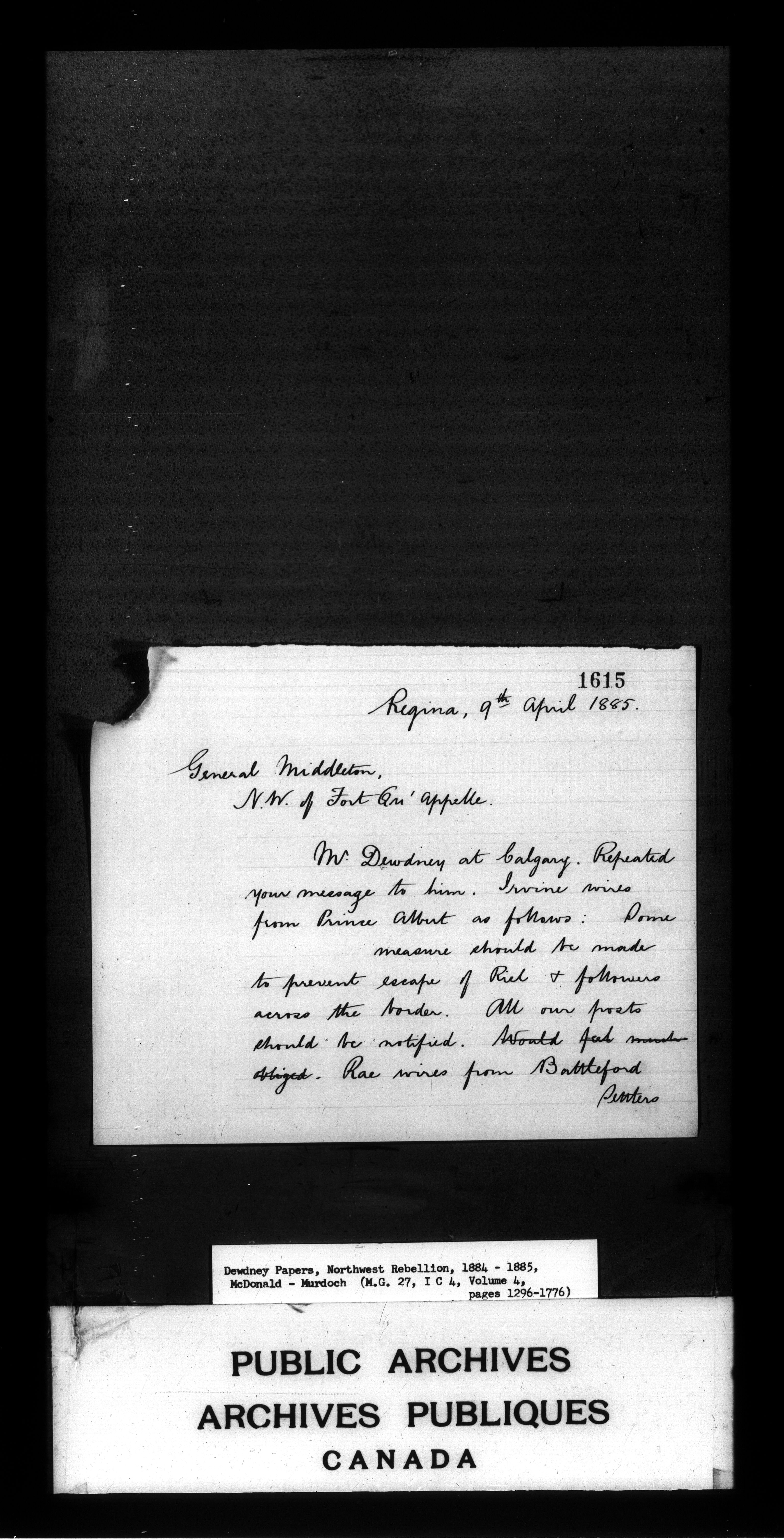 Edgar Dewdney : Northwest Rebellion papers, 1884-1885 - 2161