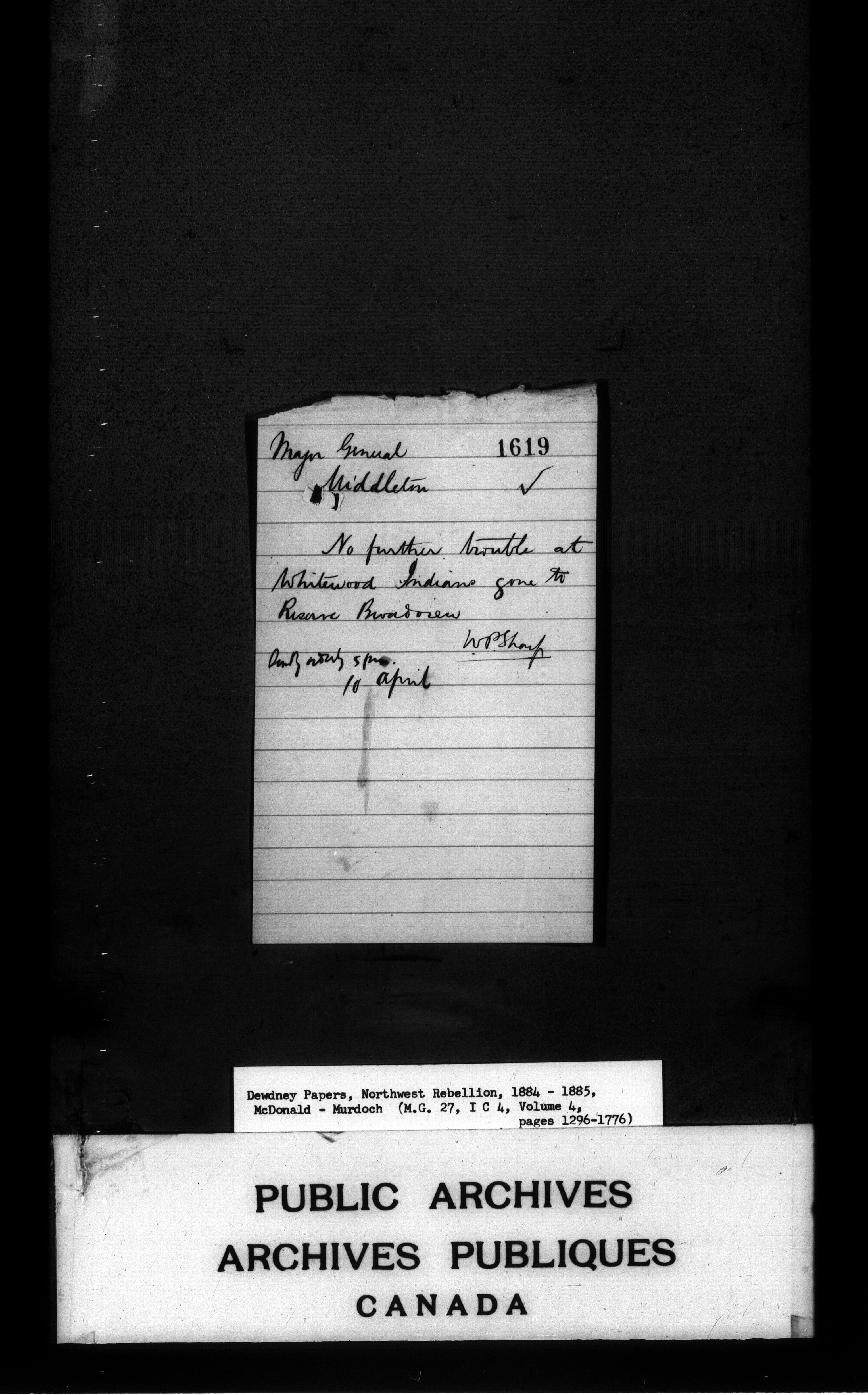 Edgar Dewdney : Northwest Rebellion papers, 1884-1885 - 2161