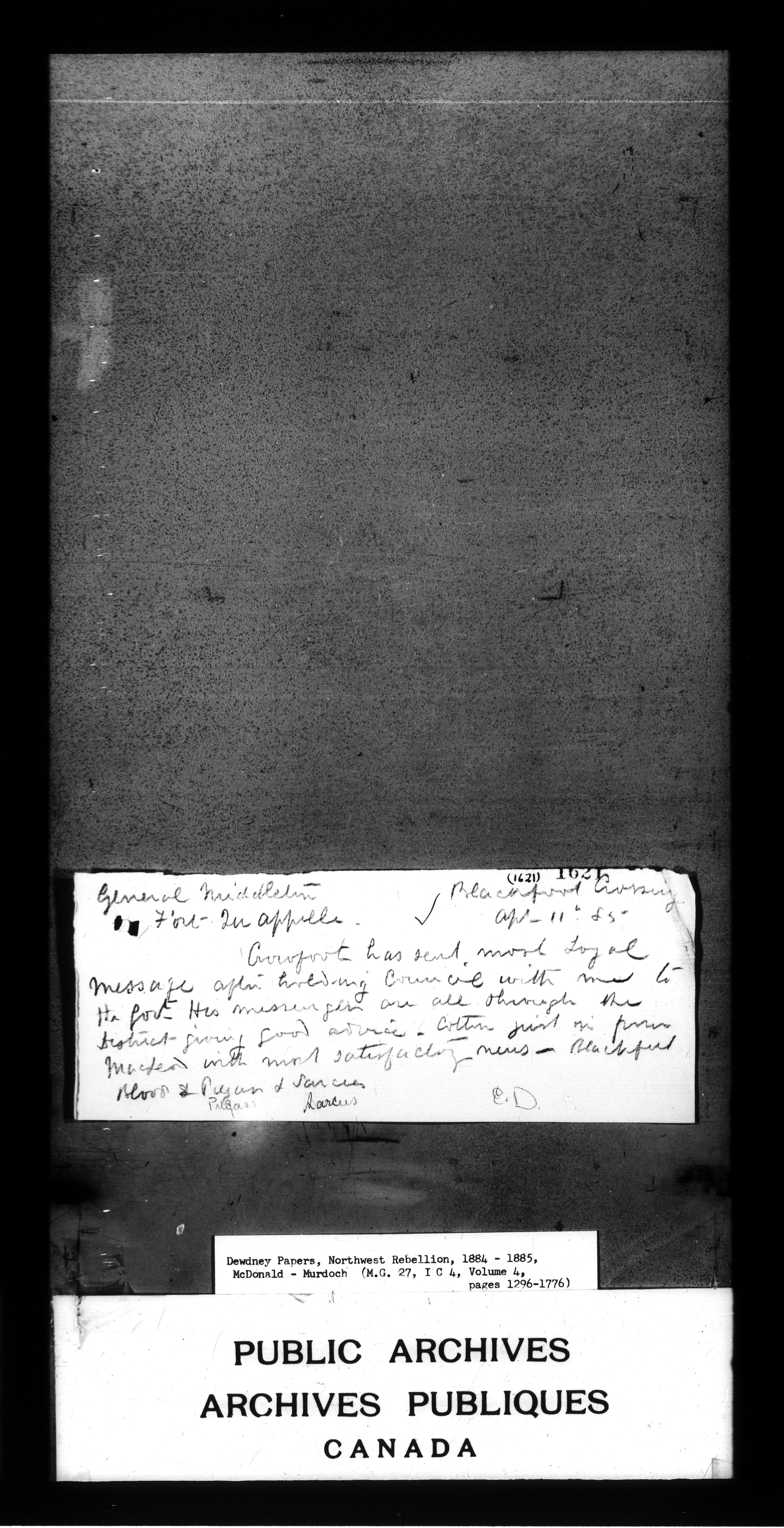Edgar Dewdney : Northwest Rebellion papers, 1884-1885 - 2161