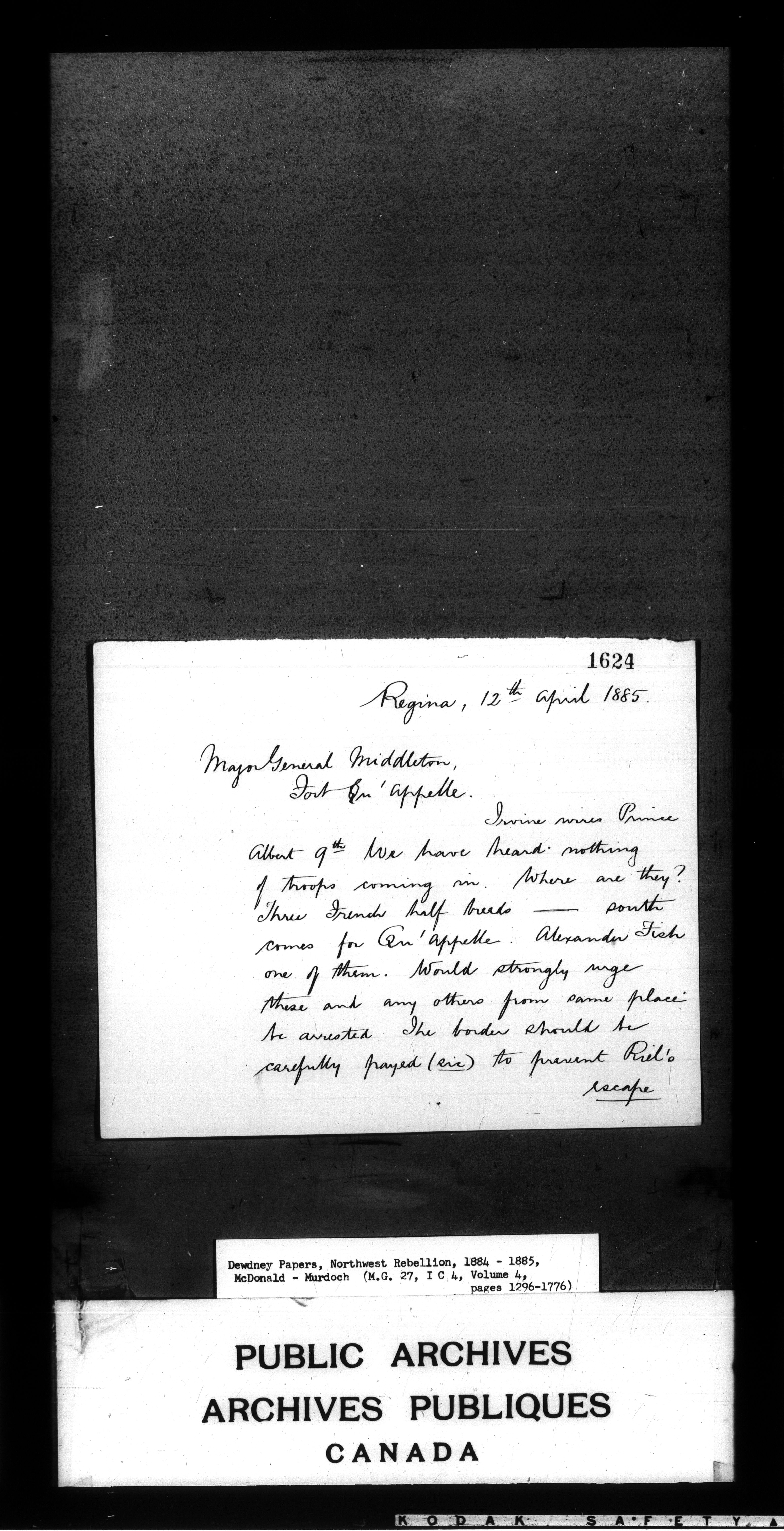 Edgar Dewdney : Northwest Rebellion papers, 1884-1885 - 2161