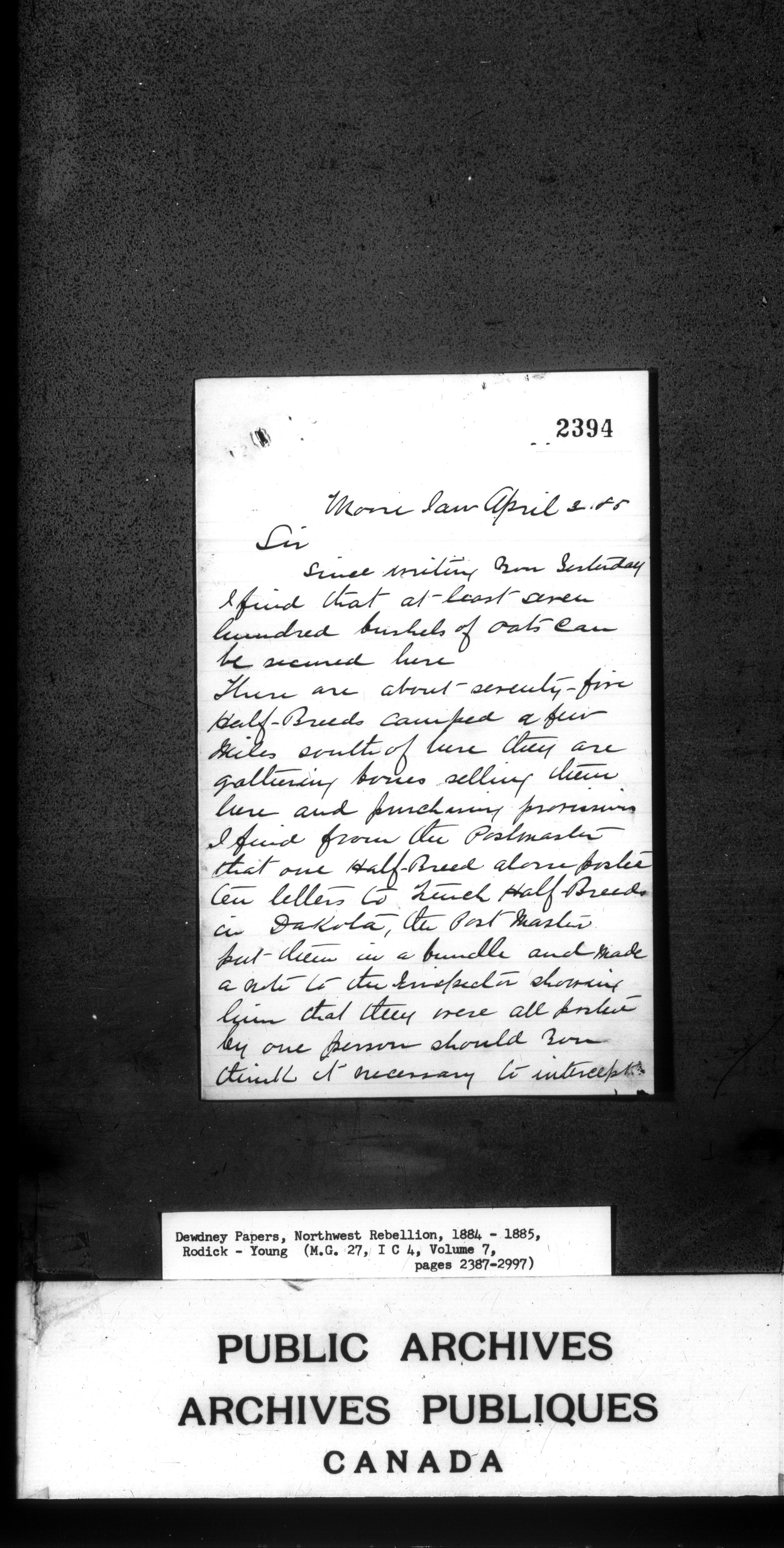 Edgar Dewdney : Northwest Rebellion papers, 1884-1885 - 2162