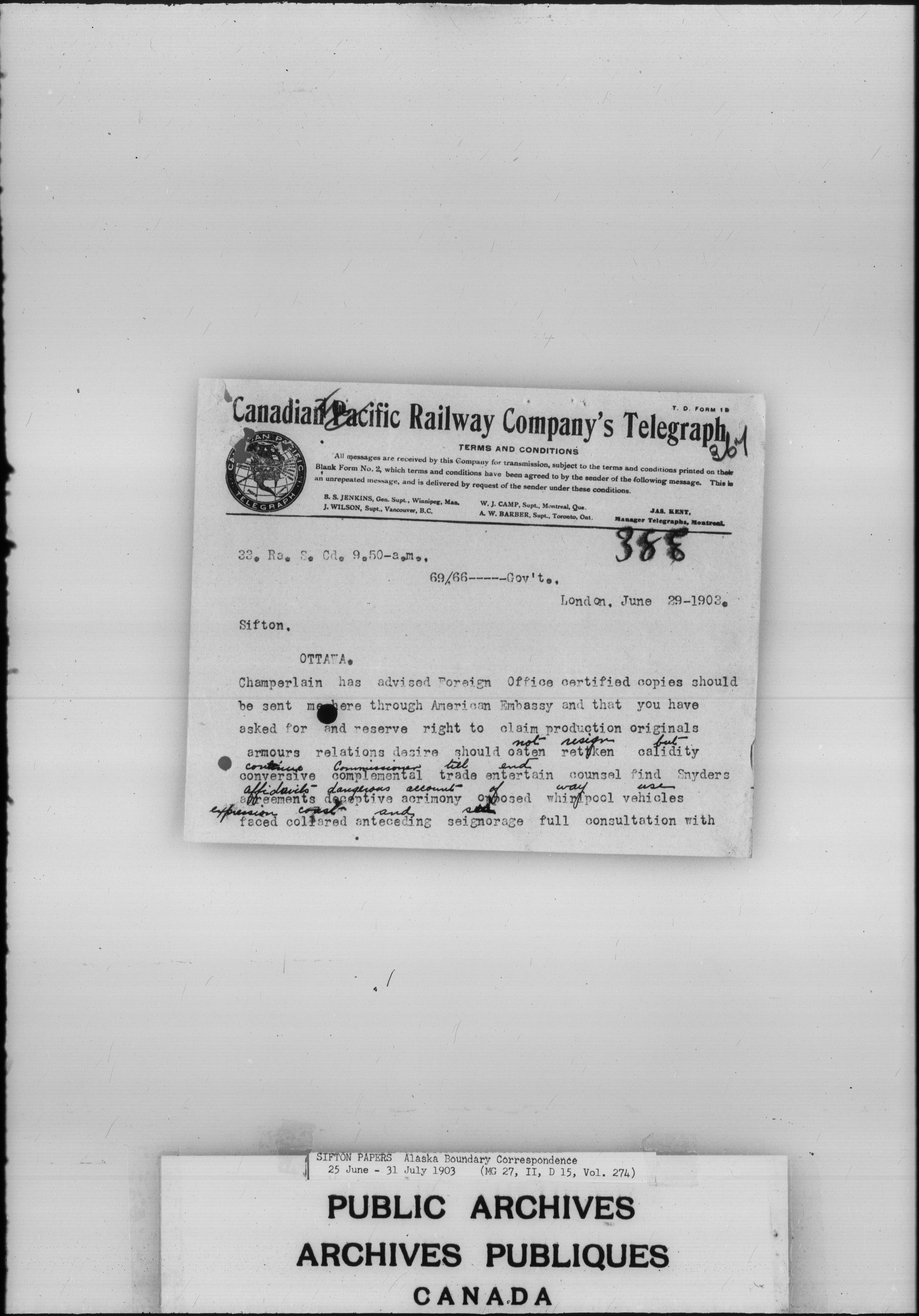 Sir Clifford Sifton : Alaska Boundary Correspondence, 1903 - 2172