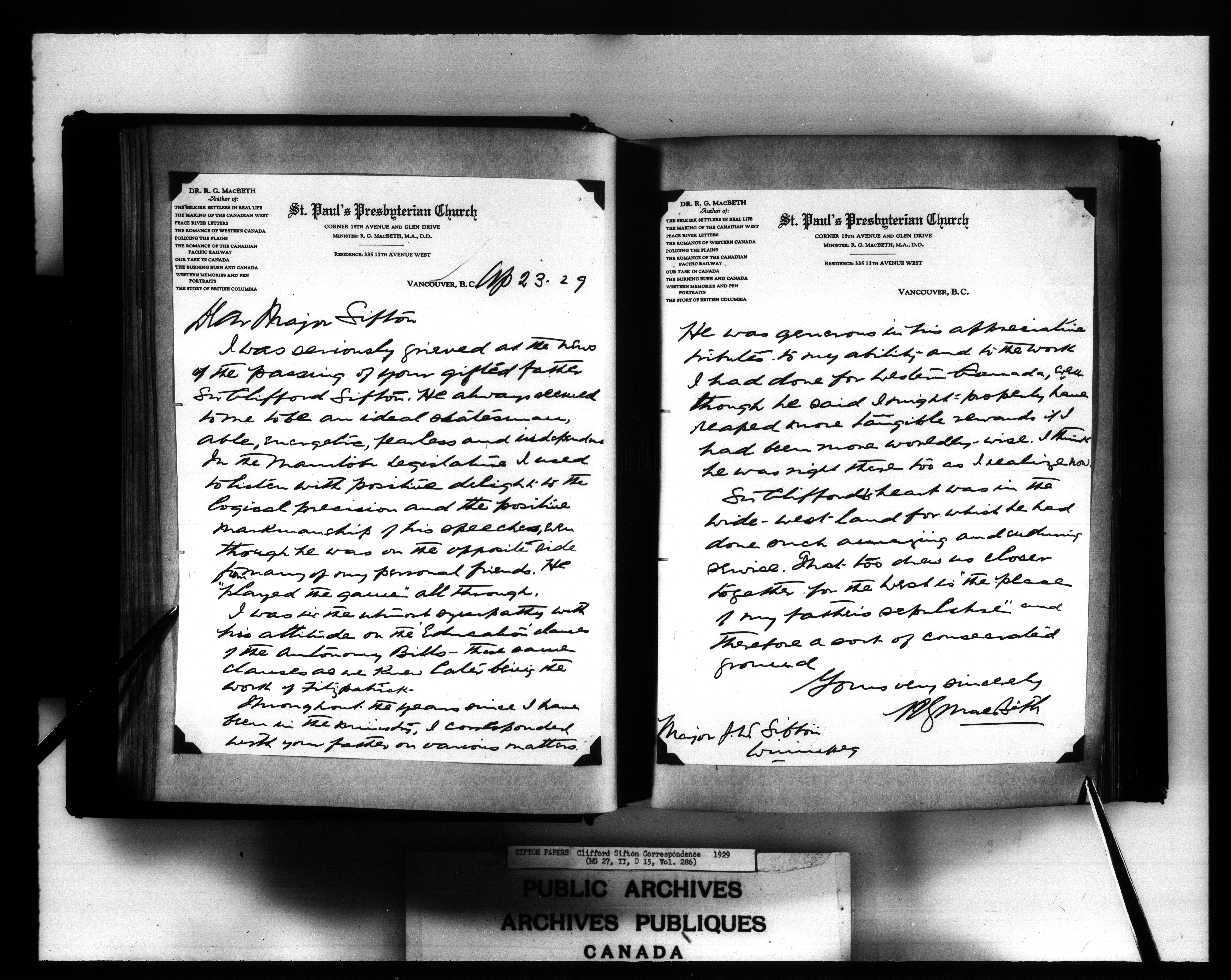 Sir Clifford Sifton : Correspondence - 2177