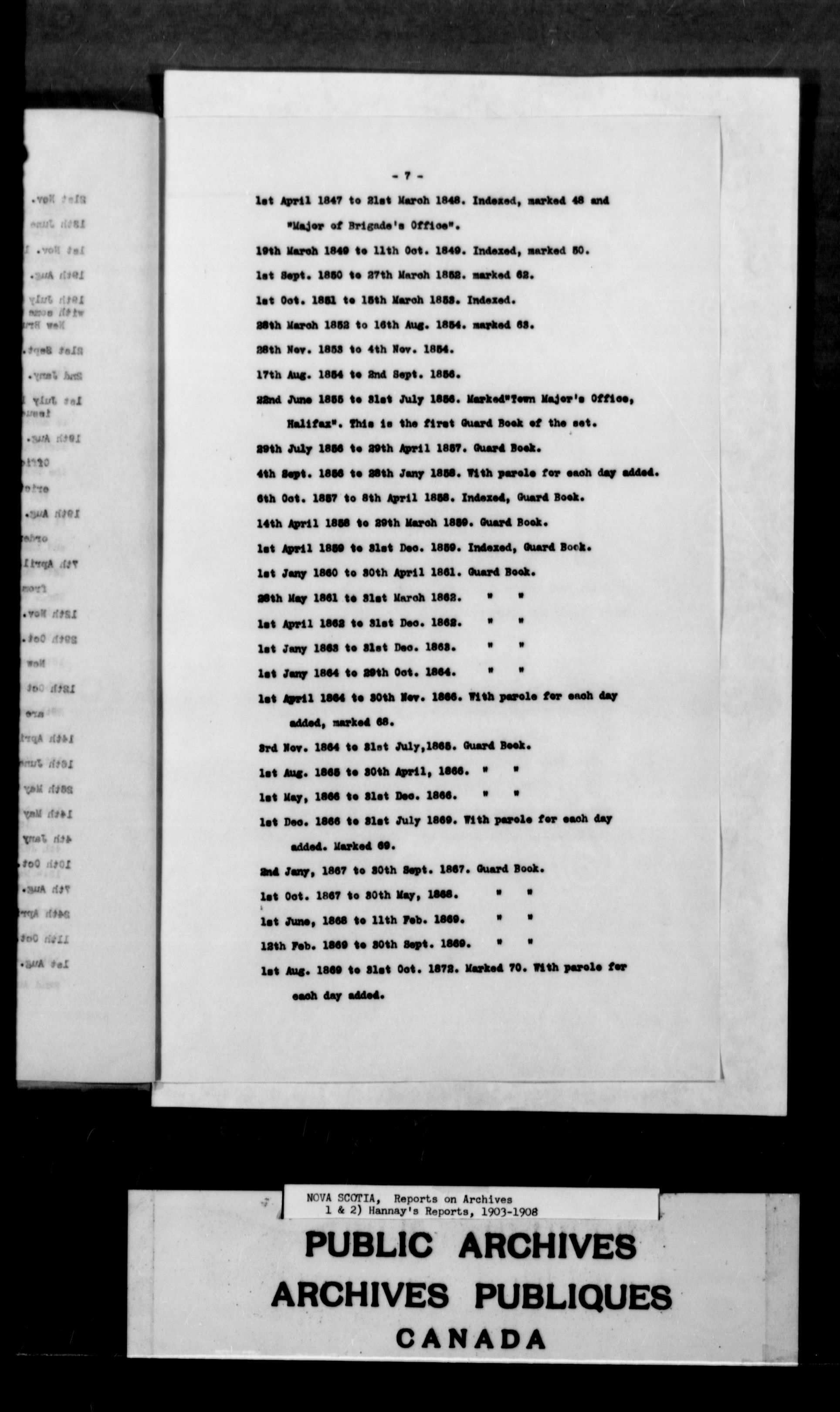 Image 00005 - Hannay's Reports (1 & 2), 1903-1908; image 00449 - Hannay's Report on Parish Registers, 1908; image 00483 - Nova Scotia Church Records 4) Inscriptions on tombstones in burial grounds, 1709-1917; image 00676 - Church Records 11) Digby, 1786-1845, Trinity, Anglican, parish register