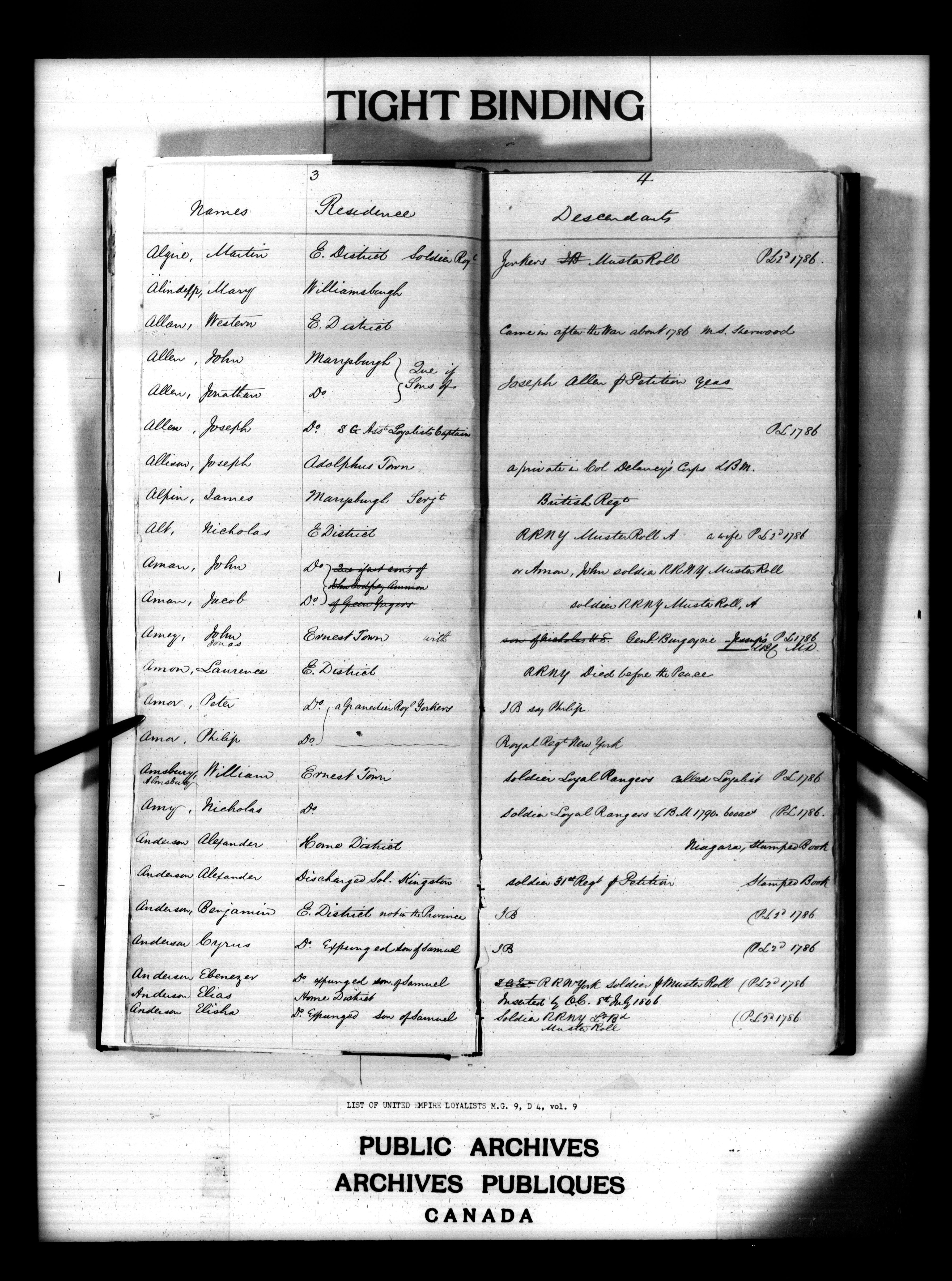 Official Loyalist List kept by the Crown Lands Department ; Executive Council United Empire Loyalist List - 2222