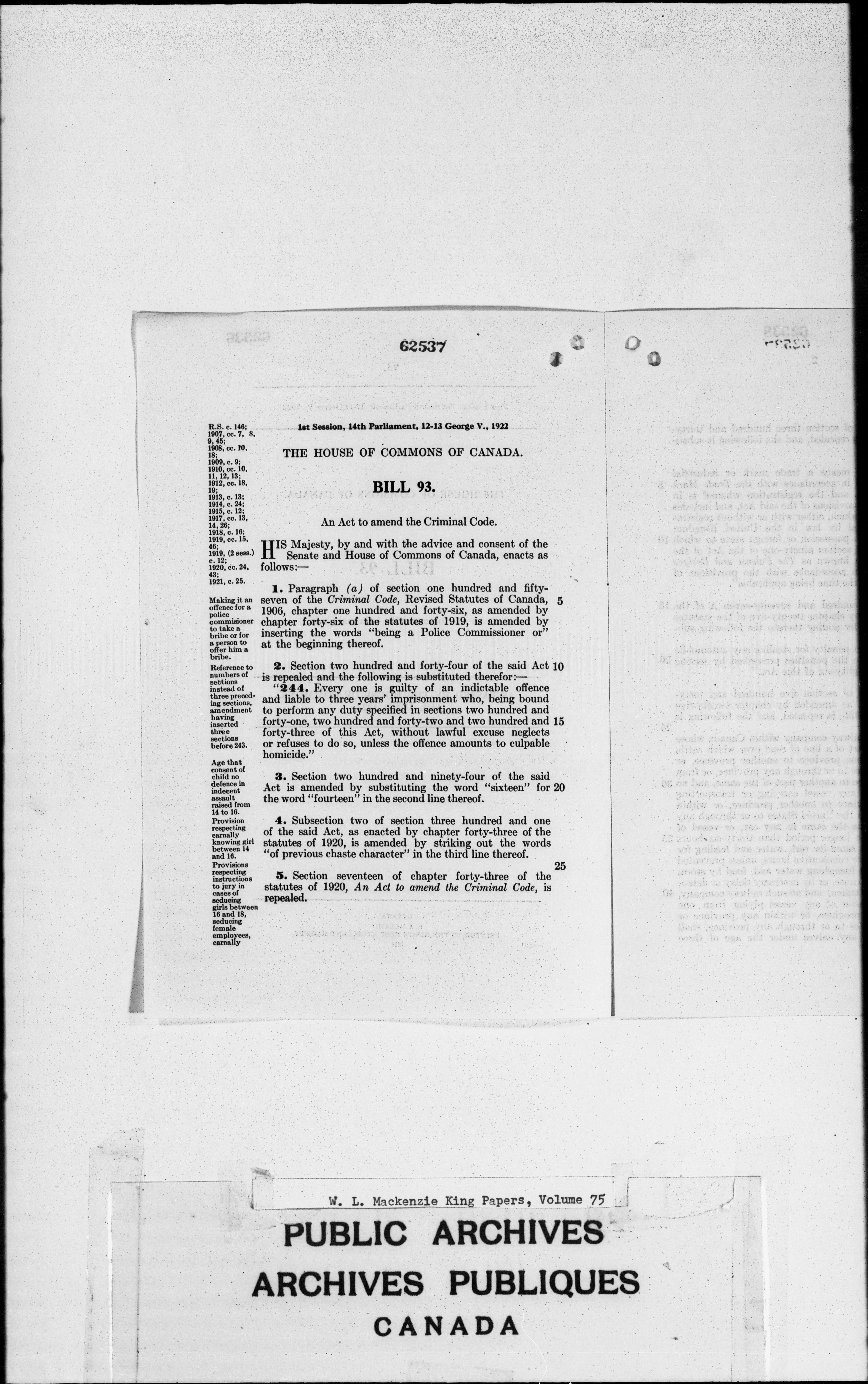 William Lyon Mackenzie King : Primary series correspondence (J1) : C-2244
