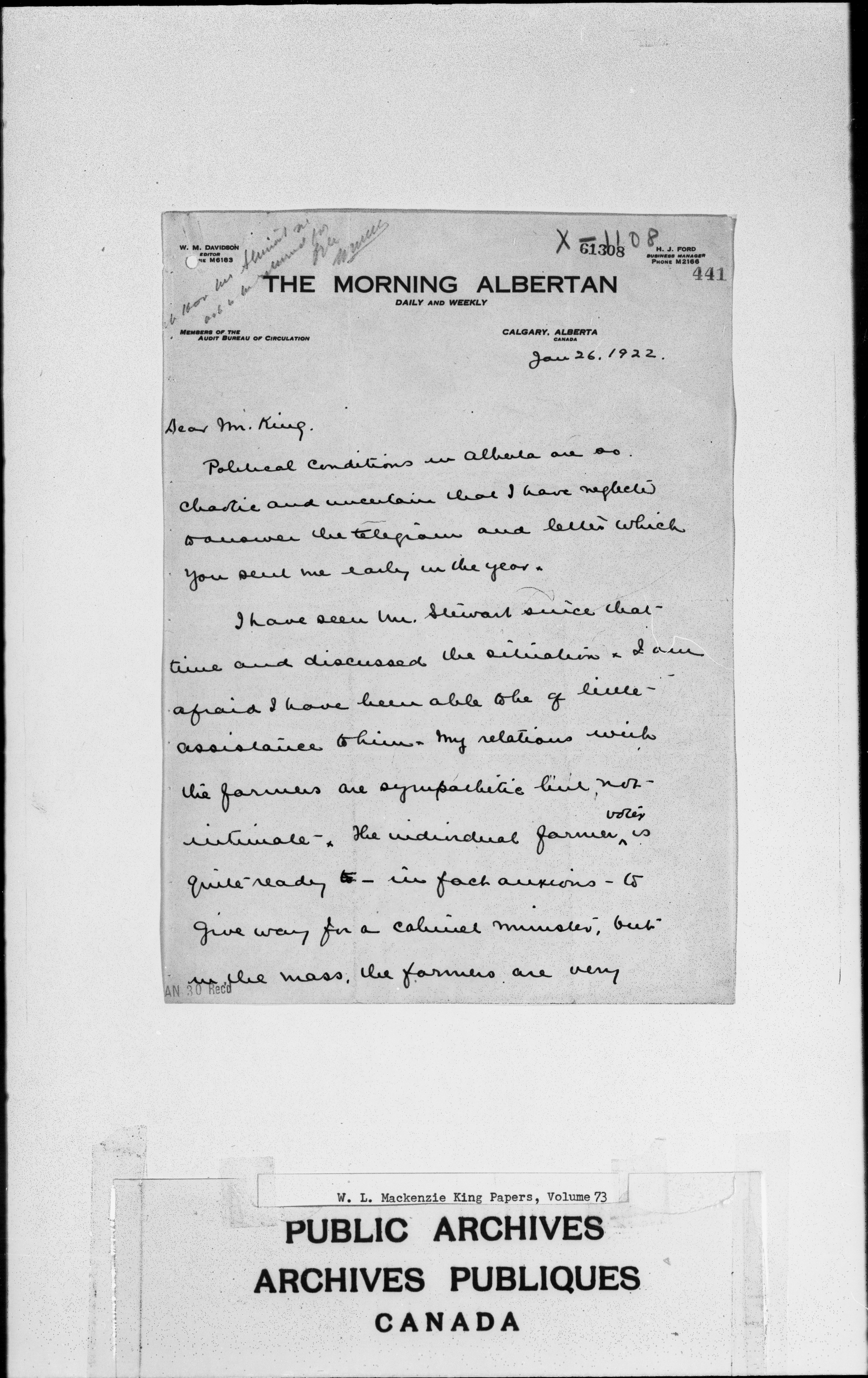 William Lyon Mackenzie King : Primary series correspondence (J1) : C-2244