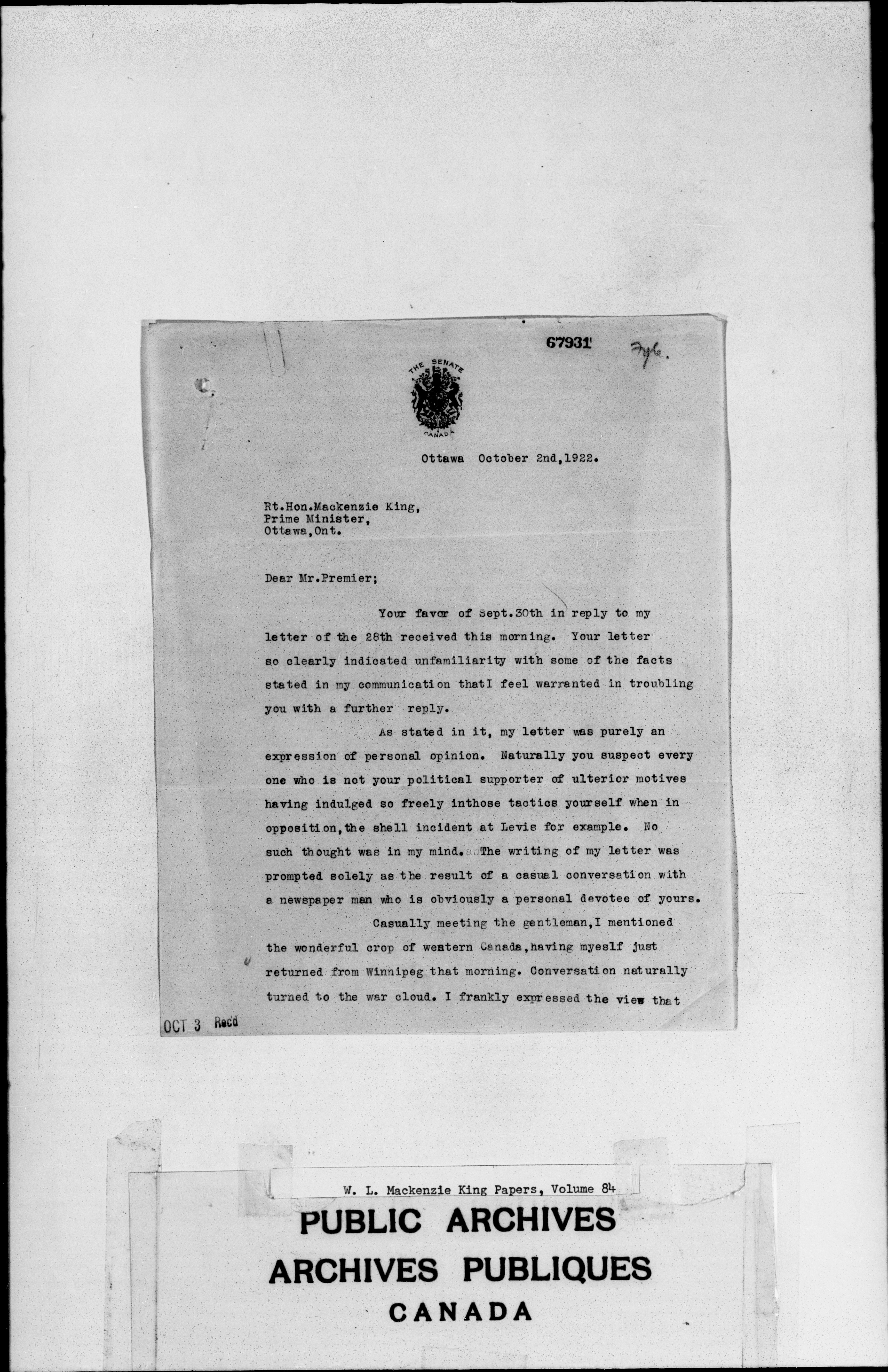 William Lyon Mackenzie King : Primary series correspondence (J1) - 2249